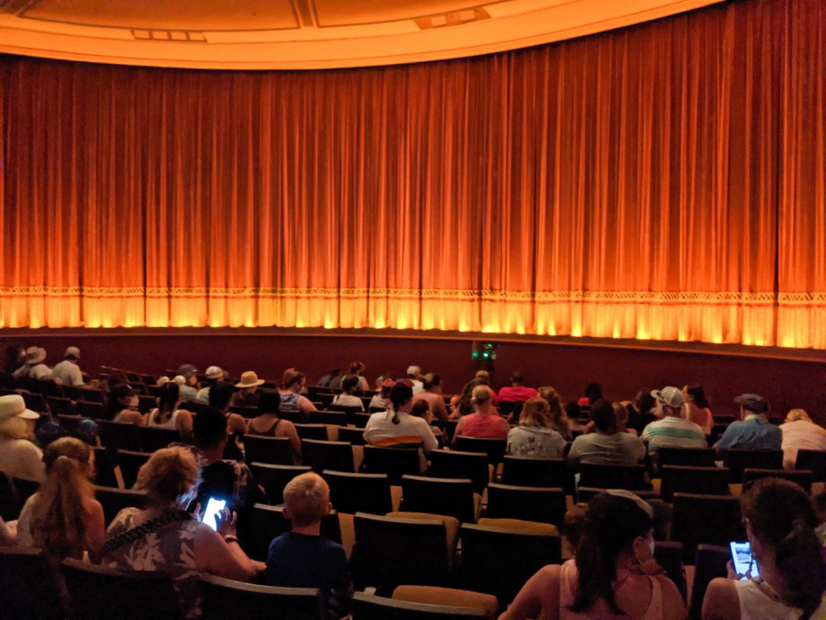 The Beauty and the Beast Sing-Along in the France Pavilion at EPCOT is the latest show to see the elimination of physical distancing. We actually received different instructions from two Cast Members. One instructed guests to leave a seat between their party and others, while the other Cast Member asked guests to move all the way down the rows.