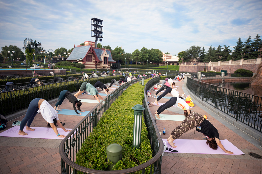 This morning, we showed you Cast Members enjoying an exclusive sunrise yoga session at the Magic Kingdom. Now Disney has shared photos of Cast Members worldwide participating in similar celebrations for International Yoga Day. Let’s take a photographic trip around the globe!