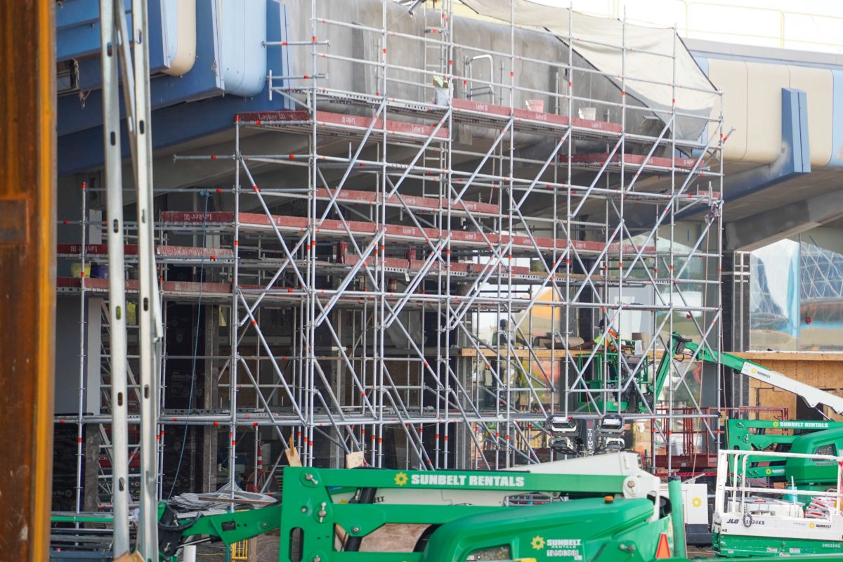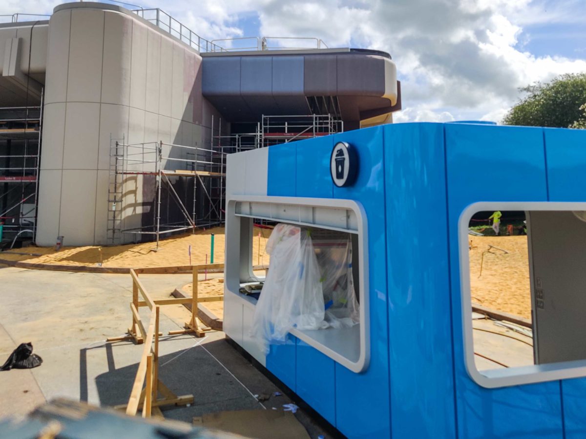 The upcoming World Celebration popcorn kiosk sits just in front of the construction area.