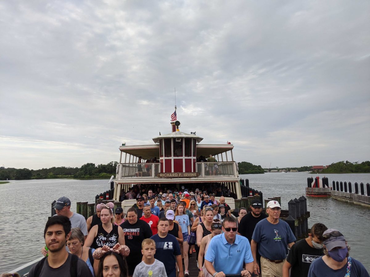 The Monorail was not running, so guests were rushing to the ferryboat instead.