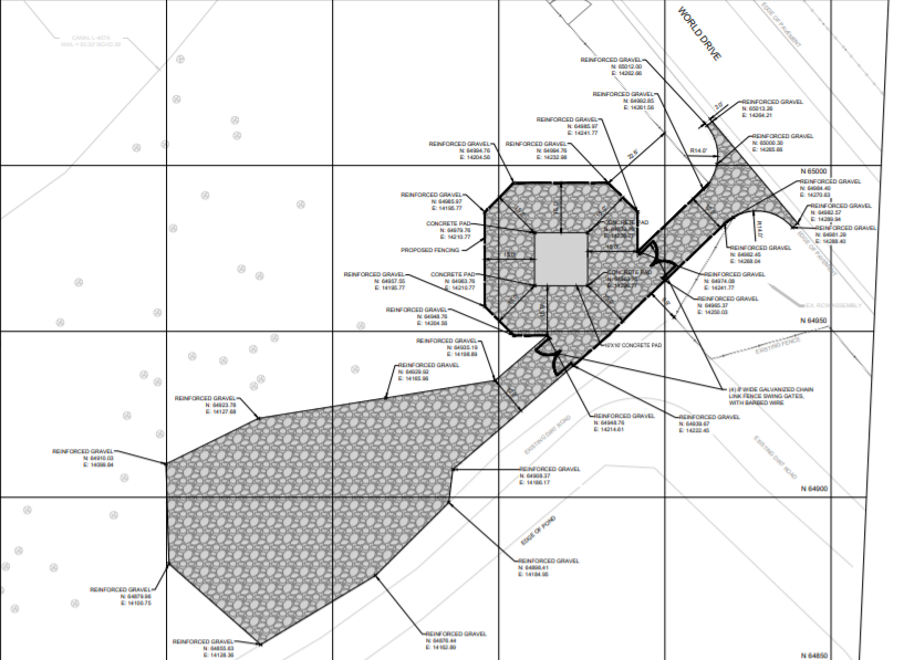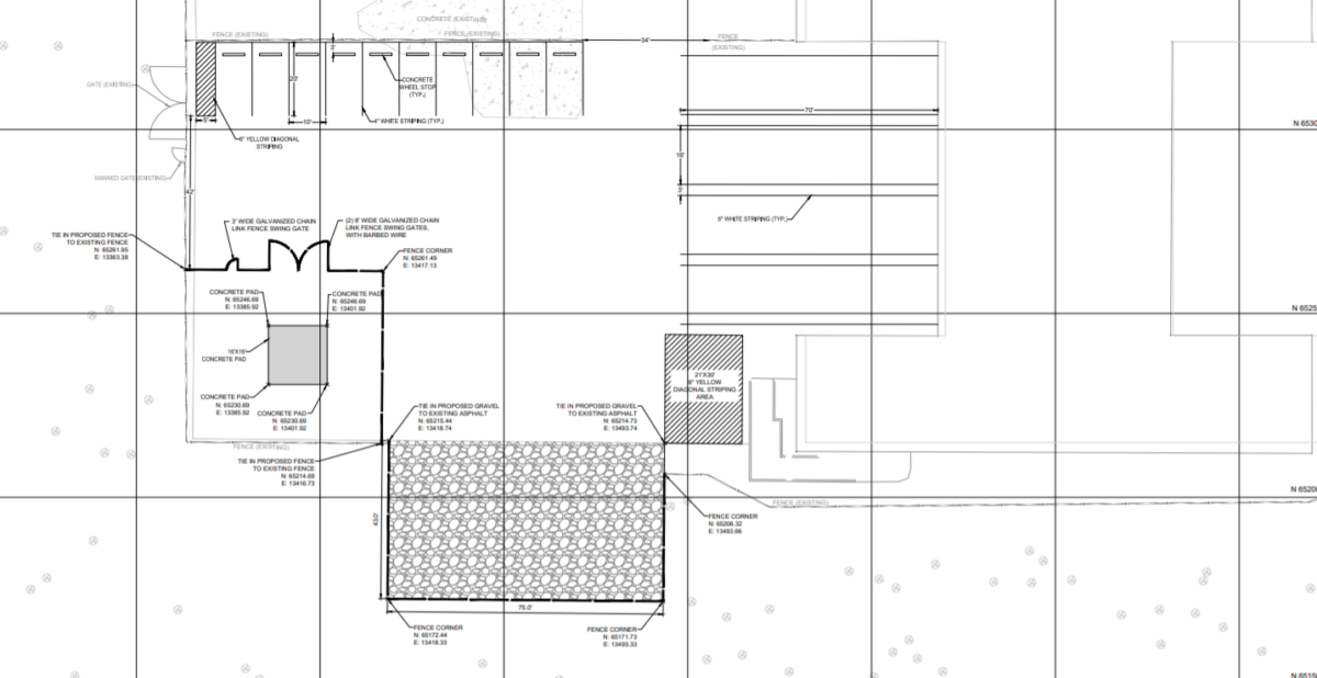 The proposed site here would extend the cement parking beside the Tech Services building and create a launchpad.