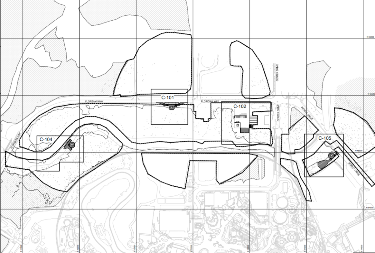 - C-102: A portion of the parking lot and adjacent area at the Reedy Creek Improvement District’s Tech Services Building