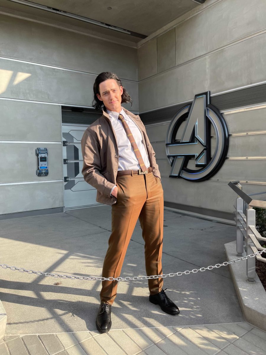 Loki was happy to show off his sleek new suit, complete with TVA “Variant” jacket. His neatly-pressed pants are a little shiny, which Loki boasted as his own custom “magic” flair.
