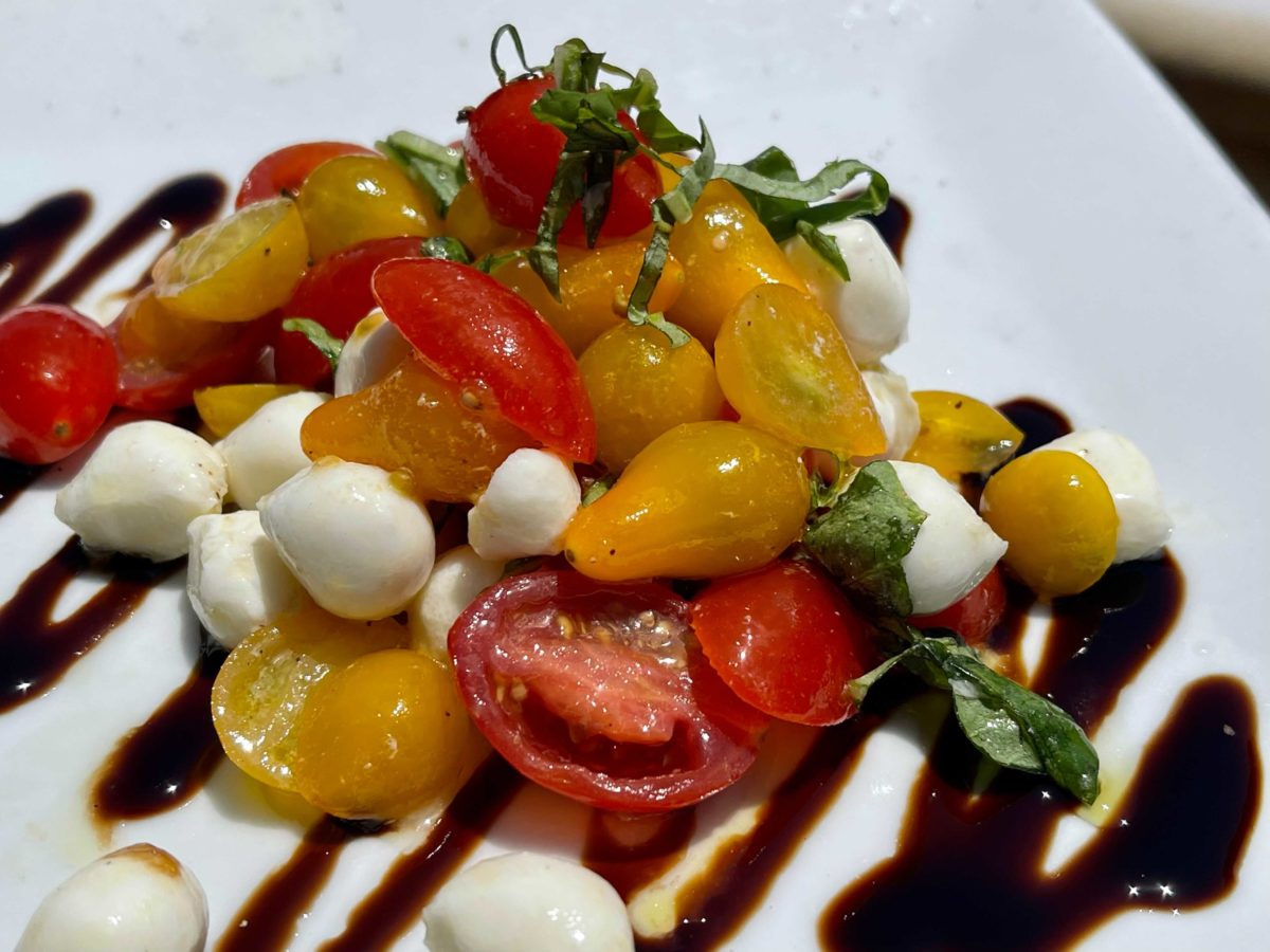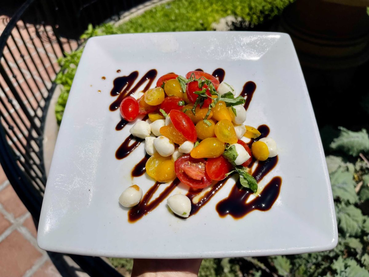 Tomatoes, Basil, and Mozzarella drizzled with Olive Oil and Balsamic Vinegar