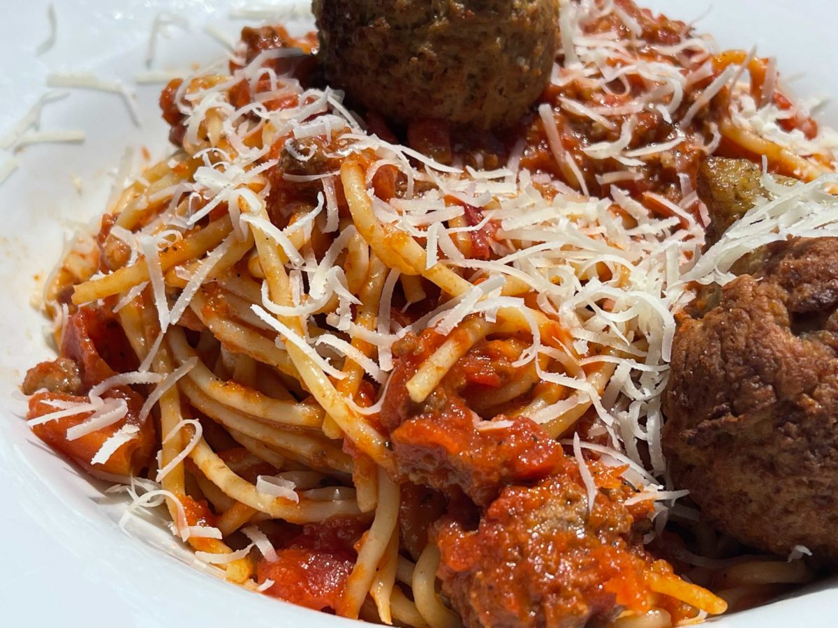 a rich Ragù of Beef, Italian Sausage, Tomatoes, Seasonings, and Meatballs