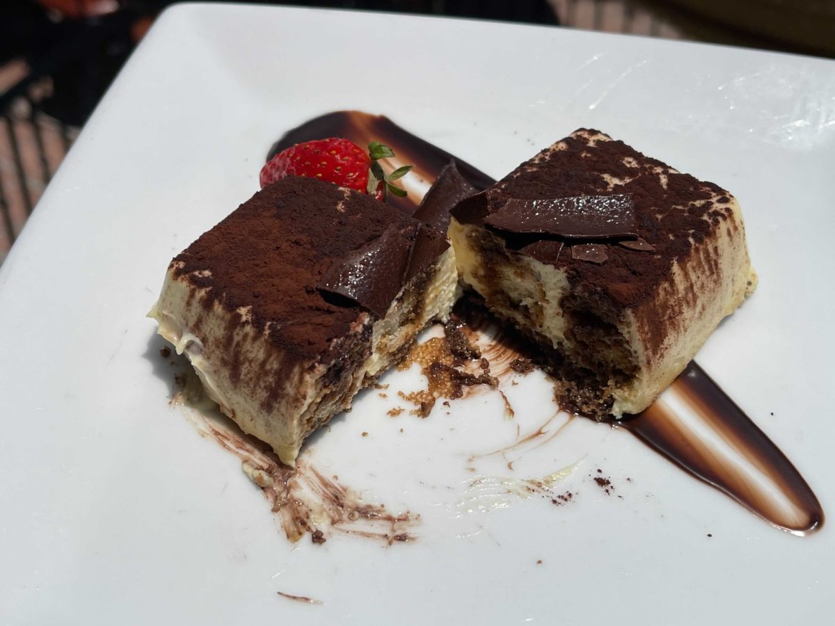 This tiramisù is a classic light sponge cake while still managing to offer a dense, rich flavor palette. The strongest flavor is the coffee, but the Ghirardelli chocolate was amazing. It offered a rich, sweet aftertaste that stays with you.