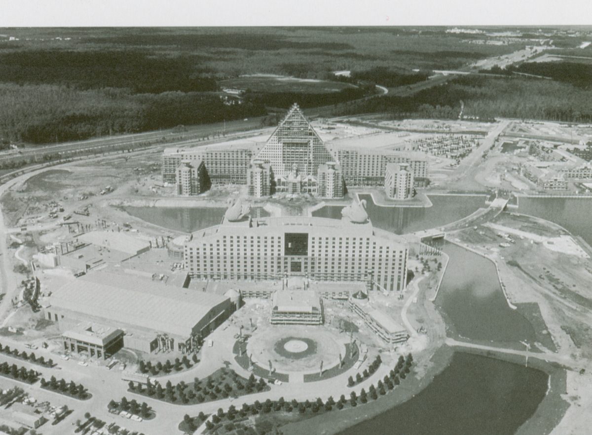 As part of the Epcot financing, Disney had signed away rights to hotels for the park to the Tishman group. A lawsuit over the issue was filed in 1986, and by 1988 it had settled and the Swan and Dolphin were announced with a 99 year land lease from Disney, with Disney having some control over the design, since much of the dispute came from Tishman’s plans to build generic buildings. The unbuilt Disney Mountain project, including multiple hotels and attractions, was part of this development cycle. Check out our comprehensive video on that project:
