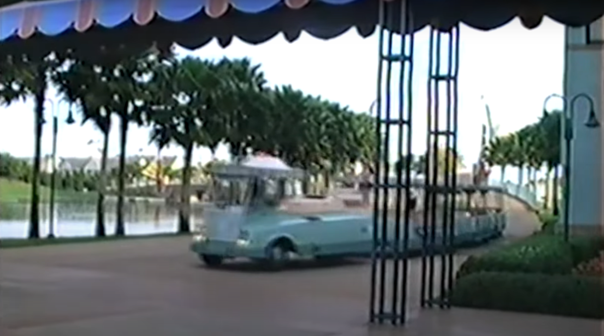 Also opening on Crescent Lake that year were the Yacht and Beach Club Resorts, on November 5 and 19 respectively. These hotels, defined by Robert A.M. Stern, are designed to evoke the feel of New England resort areas of Martha’s Vineyard and Newport, Rhode Island. Yacht Club had 635 rooms and the Beach Club 584. These two resorts are connected and centered around the shared sandy bottom pool, Stormalong Bay. Dining at the time consisted of the still popular Beaches and Cream, Cape May Café, and Yachtsman Steakhouse. There was also the Yacht Club Galley, now the Ale & Compass, and Ariel’s Seafood. Atlantic Wear and Wardrobe Emporium was the main shop at the Beach Club and Fittings and Fairings, Clothes and Notions at the Yacht Club. In addition to the walking and boat transportation available at these resorts today, tram service similar to that found in the parking lots would also connect the Epcot resorts to both parks.