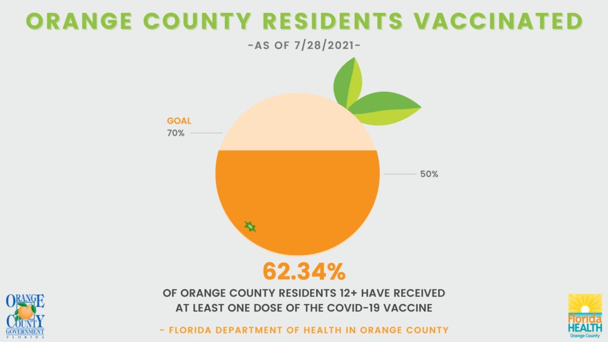 At this time, 62.34% of Orange County residents have received one dose of the COVID-19 vaccine. Demings stated he believes if indoor masking is instituted and vaccine rates increase, it will help control the spread of COVID-19 in the community. He recently announced that the county was seeing 1,000 new cases a day.