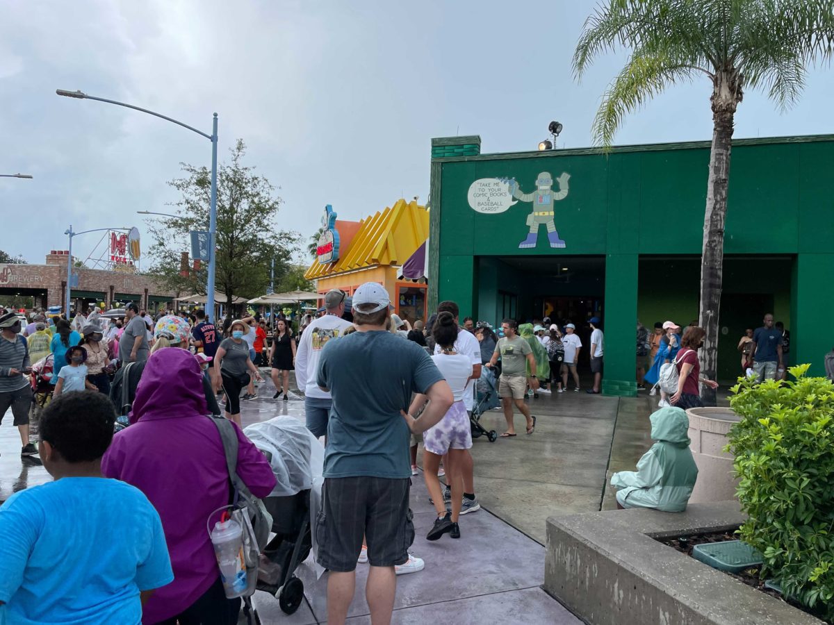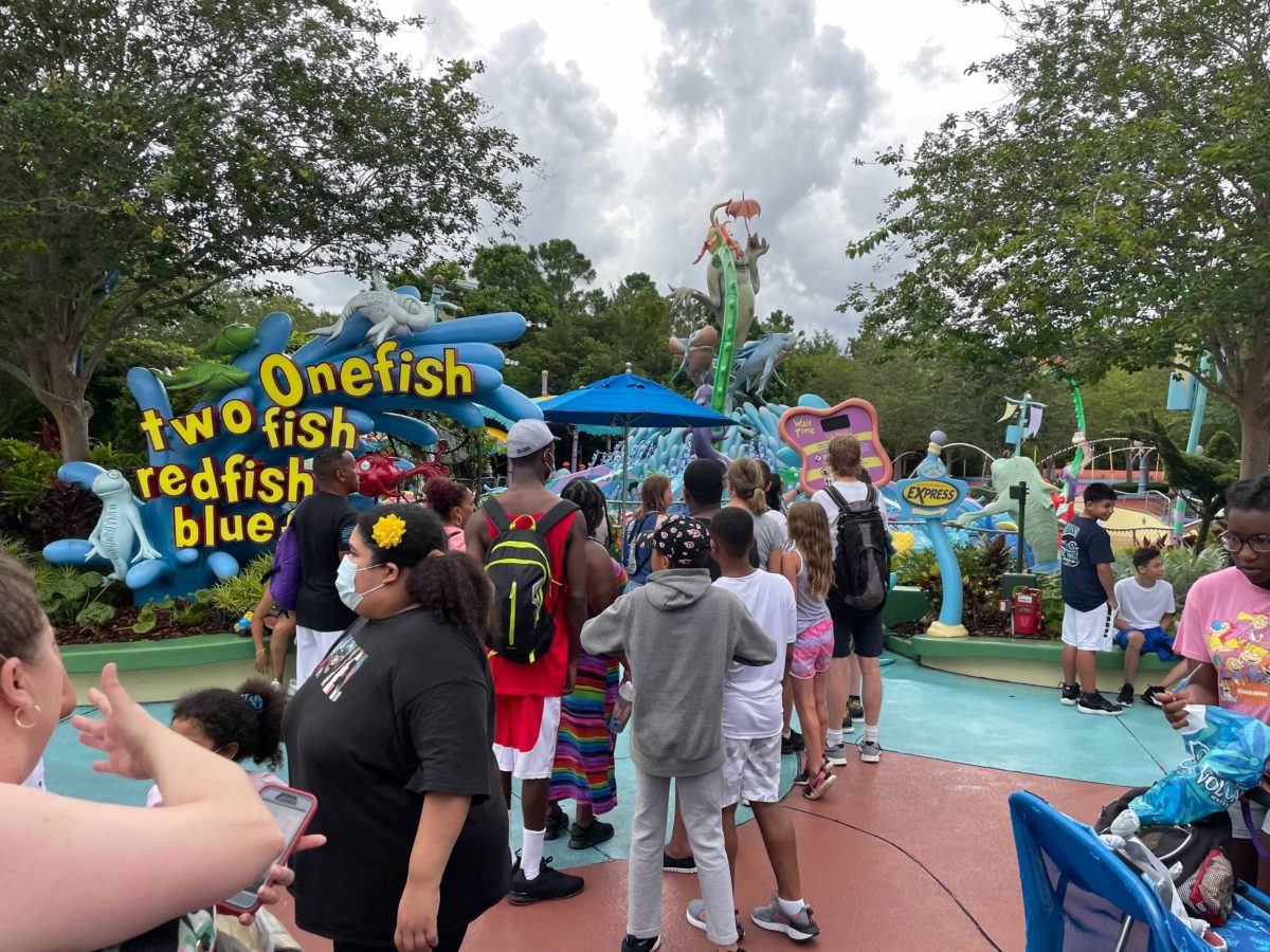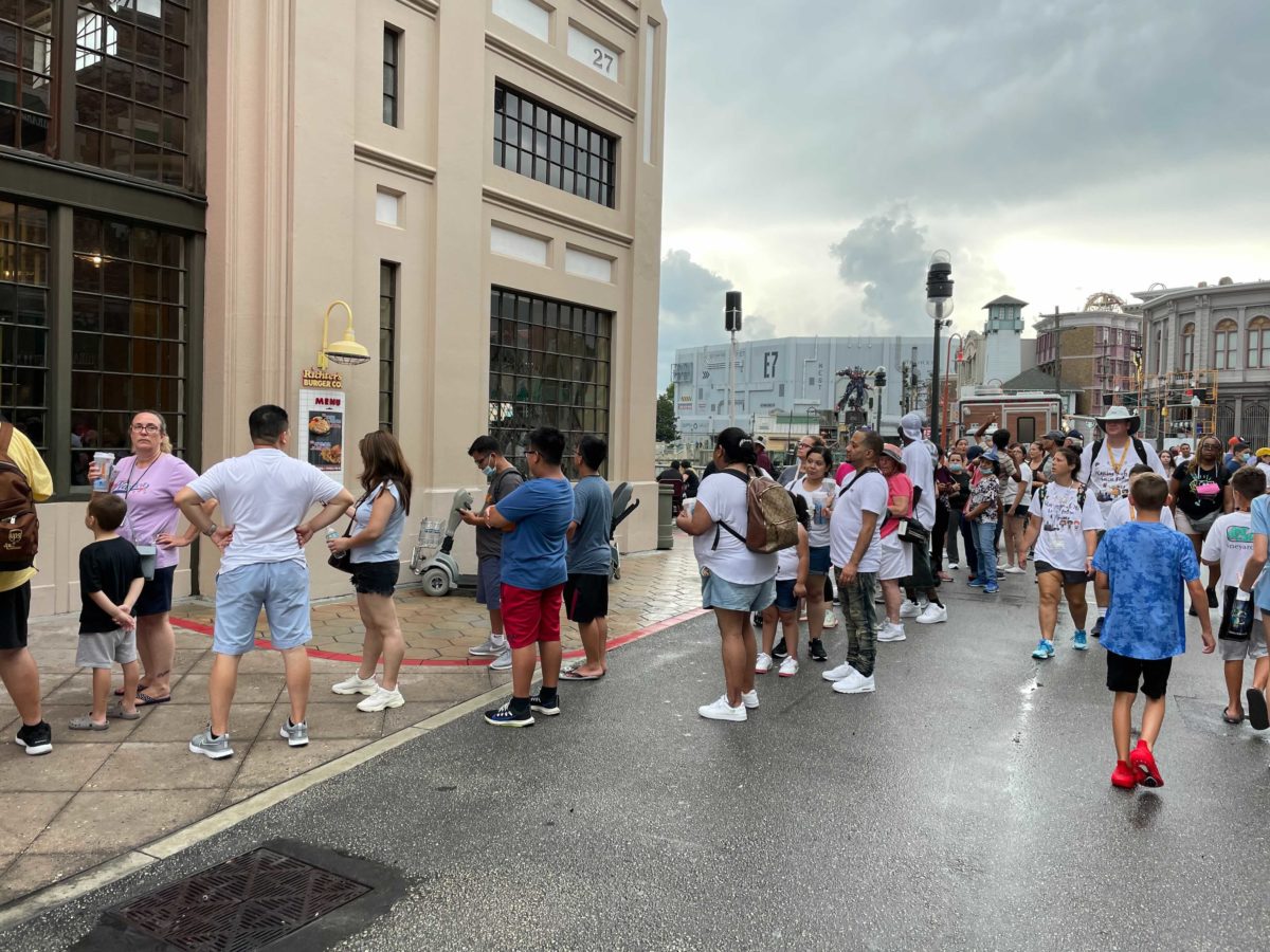 Whether it’s 1 Fish, 2 Fish or VelociCoaster, some guests choose to line up and wait for attractions to reopen.