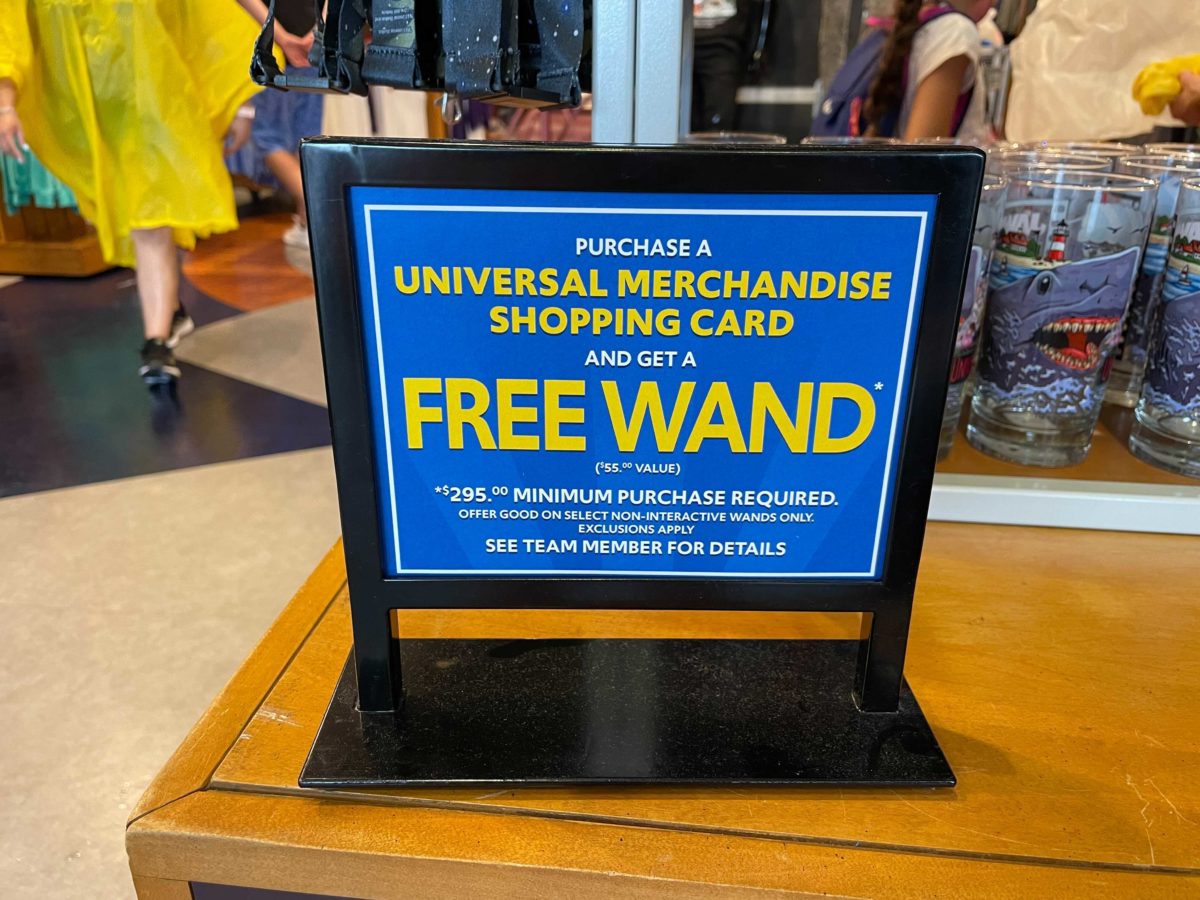 The “Free Wand” promotion has returned again to Universal Orlando, but there’s been a price increase. With the purchase of a merchandise gift card with a minimum of $295, you qualify for a free non-interactive wand. This promotion has slowly increased in price, but always for a non-interactive wand, unfortunately. They should really consider offering an interactive wand with this deal.