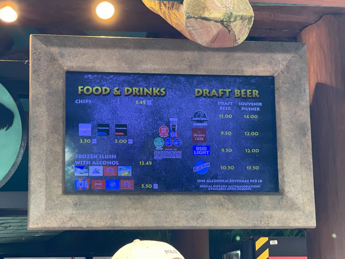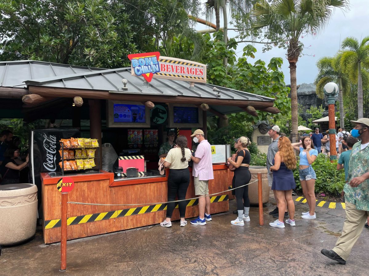 Bone Chillin’ Beverages in Jurassic Park had been offering corn dogs for a while, but now they’ve switched to just drinks and chips. You can get a frozen slush with alcohol here or a bag of chips for $3.49.
