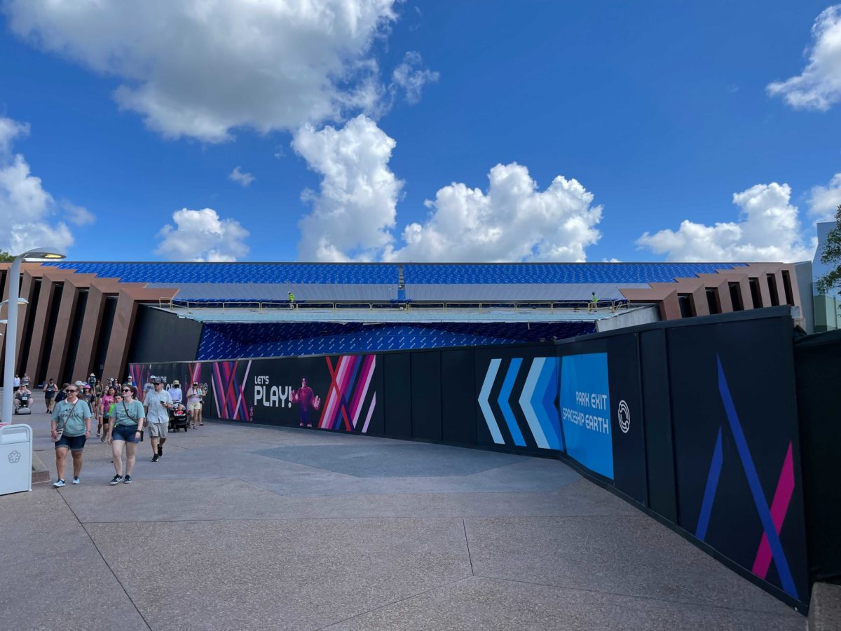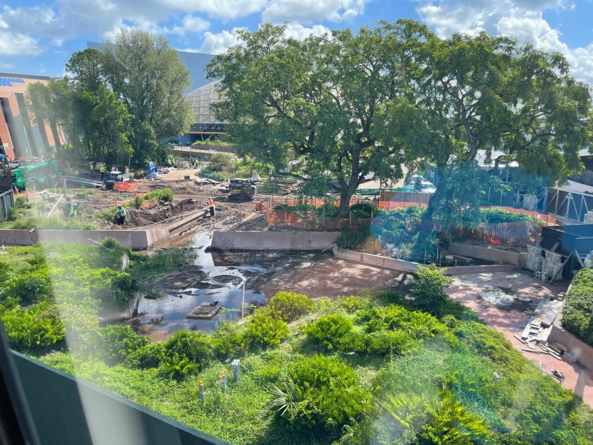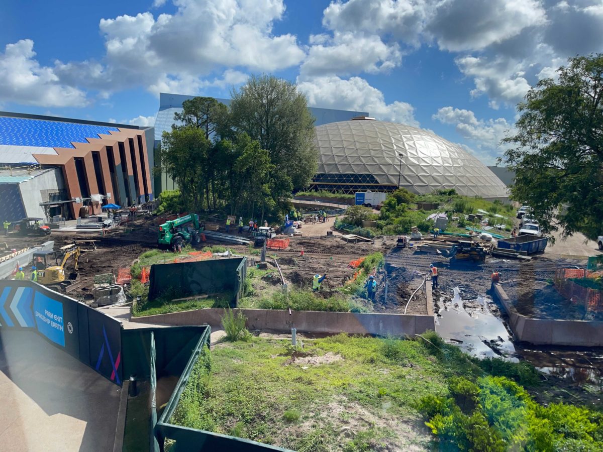 Construction has turned the grassy area ahead of the Universe of Energy Pavilion into a swamp, but this will all be cleaned up before the attraction opens.