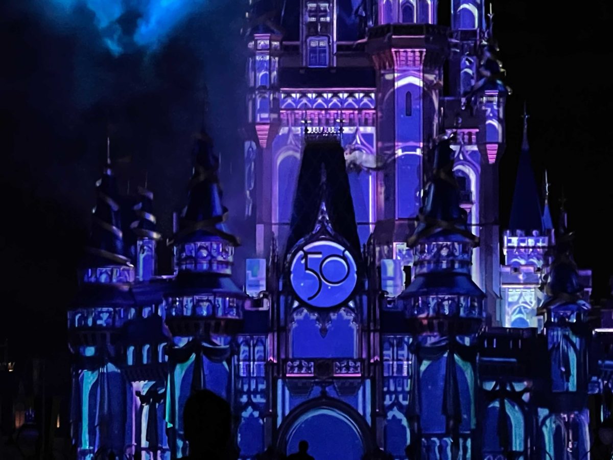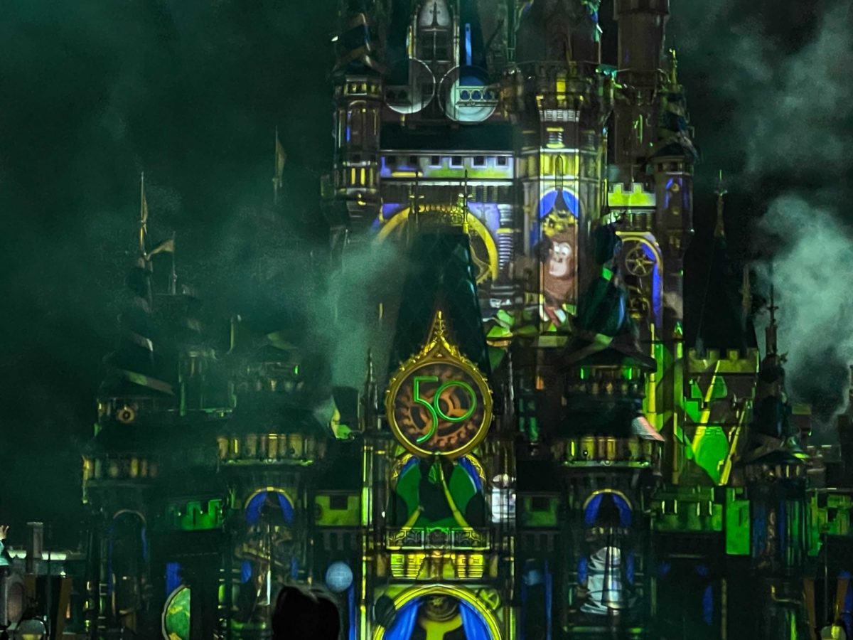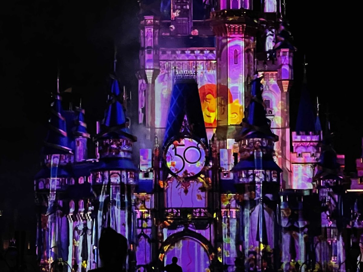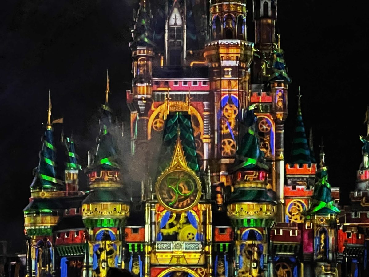 With the new 50th anniversary medallion recently installed on Cinderella Castle in the Magic Kingdom, we were curious how this new addition would play into the Happily Ever After Fireworks show, with so many projections on the castle. We were pleasantly surprised to see the magic work out perfectly.