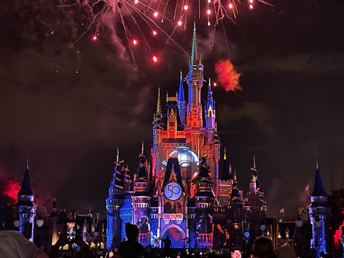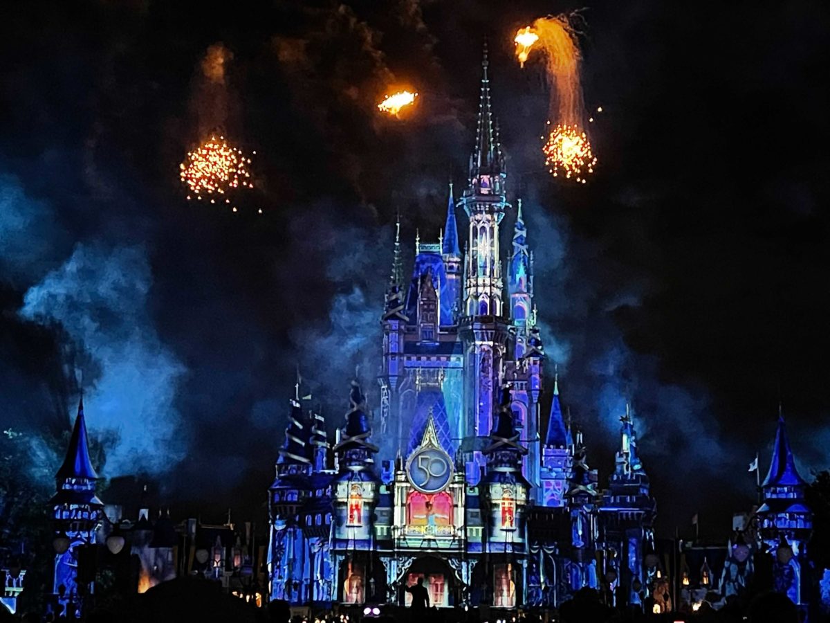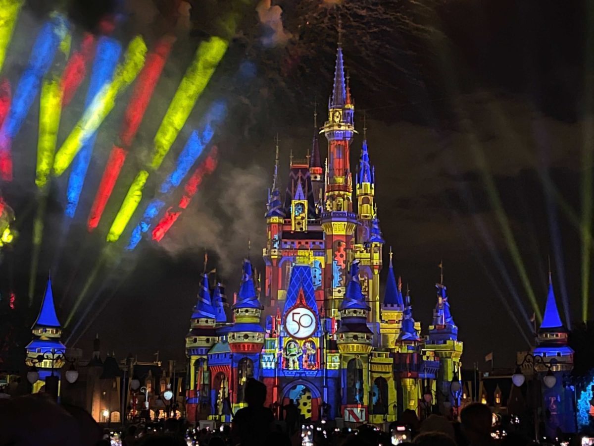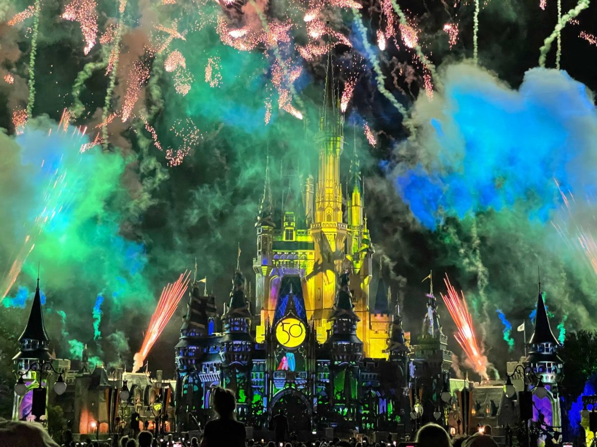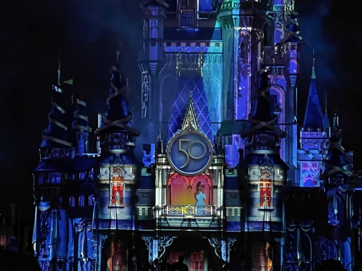 With the new 50th anniversary medallion recently installed on Cinderella Castle in the Magic Kingdom, we were curious how this new addition would play into the Happily Ever After Fireworks show, with so many projections on the castle. We were pleasantly surprised to see the magic work out perfectly.