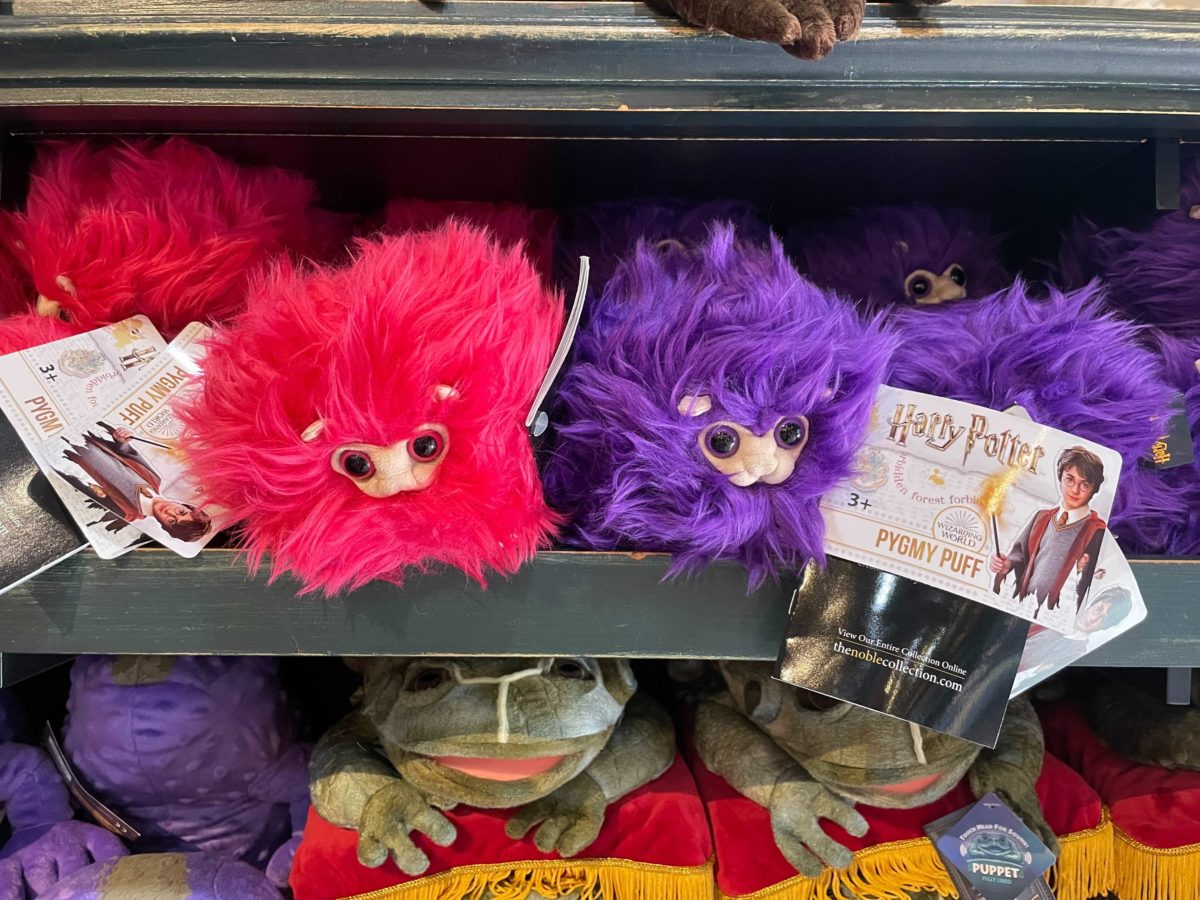 Pygmy puffs are available in pink and purple. Fred and George Weasley sell the popular creatures at Weasleys’ Wizard Wheezes.