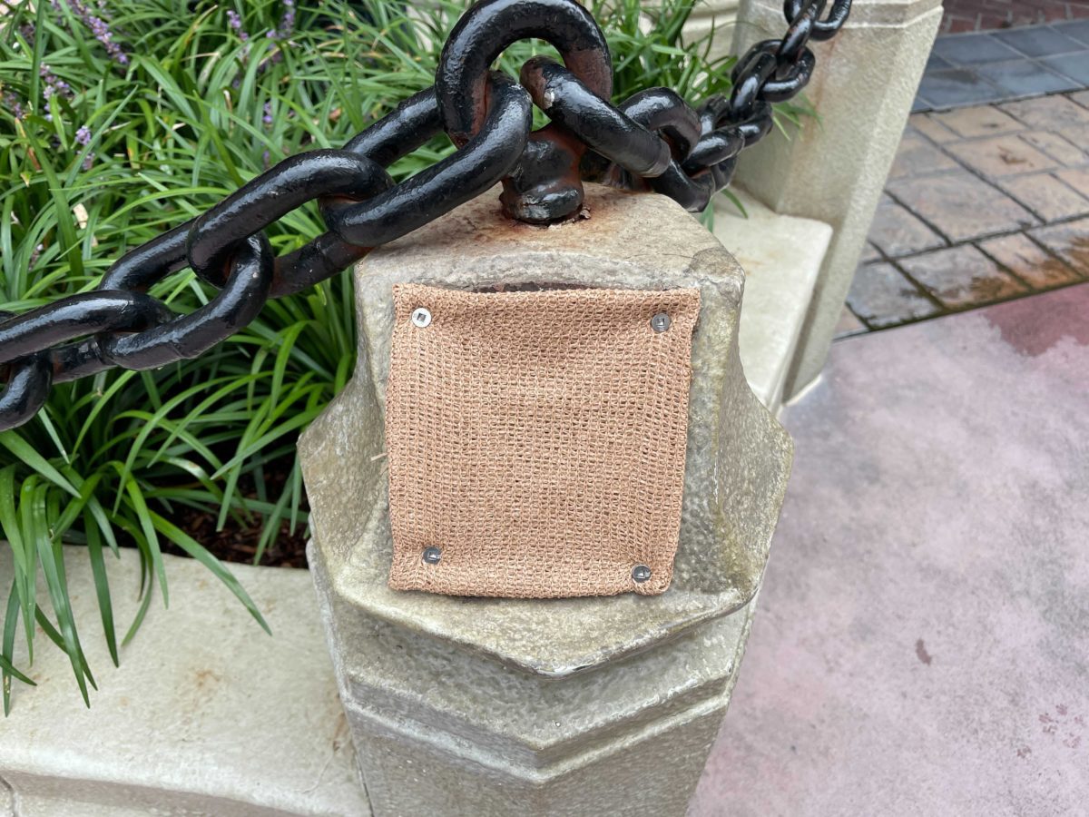 The tap point across from Sir Mickey’s also has a rough canvas overlay stapled in instead of with screws.