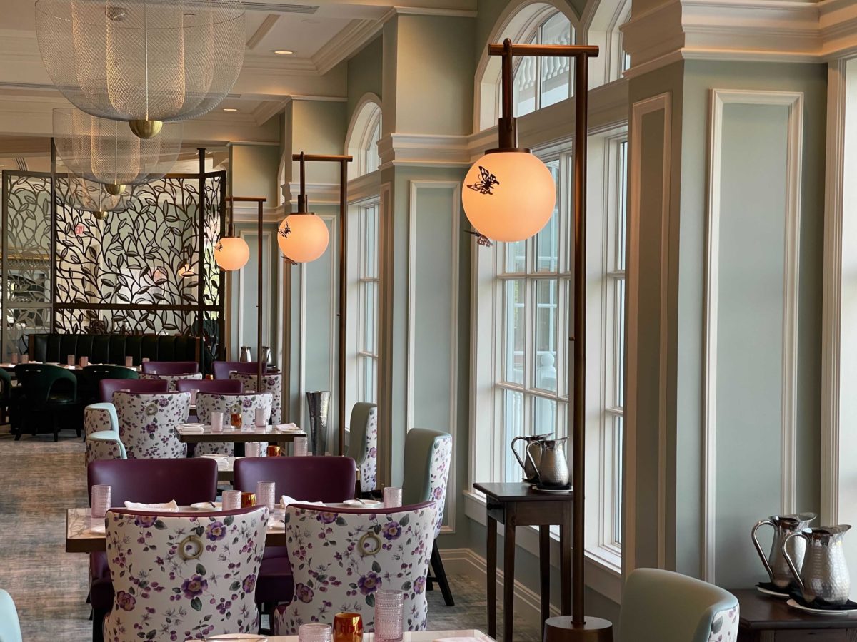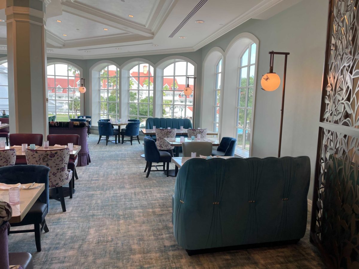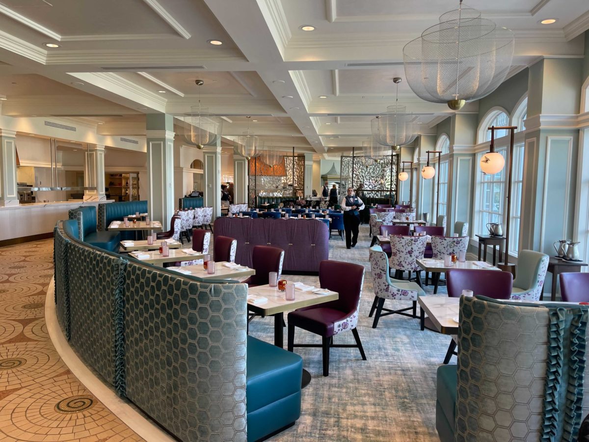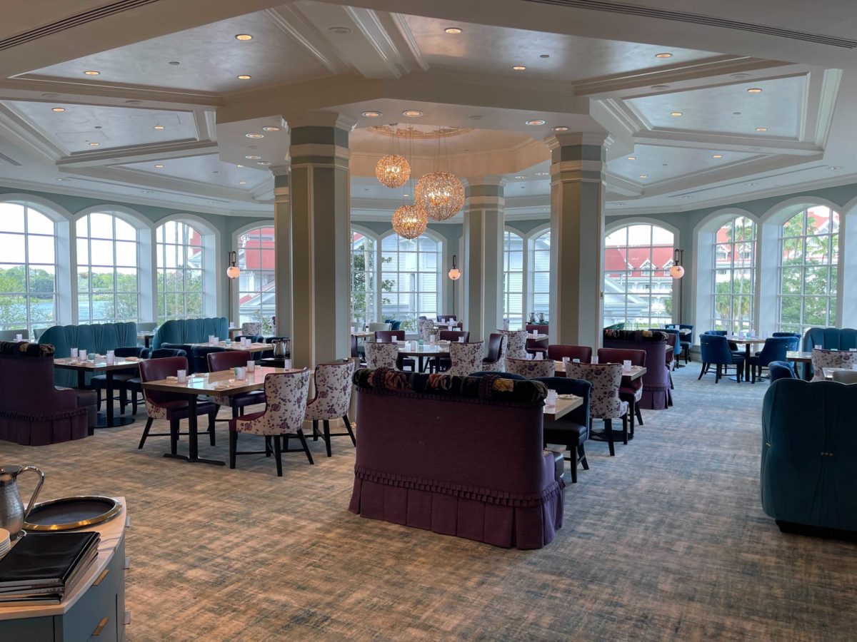 The dining room is elegant and fits well with the Grand Floridian, especially with the brighter color palette.