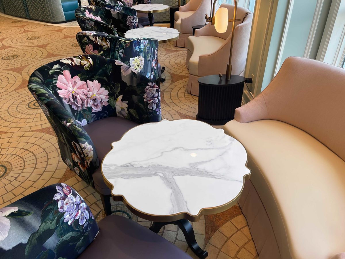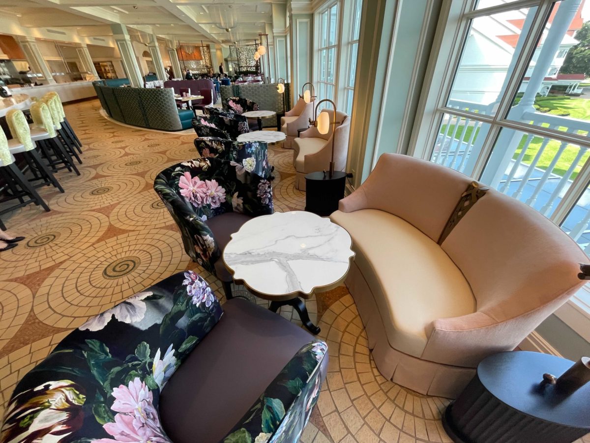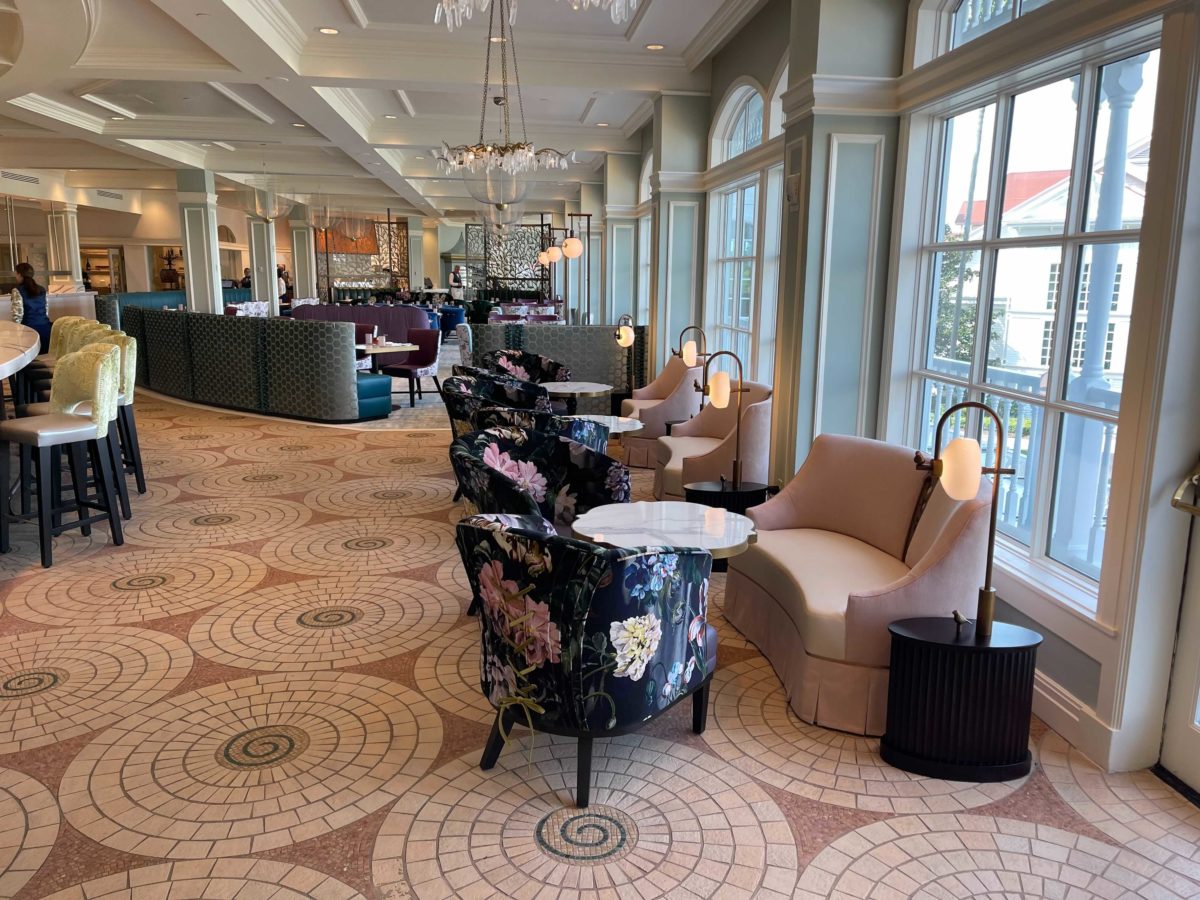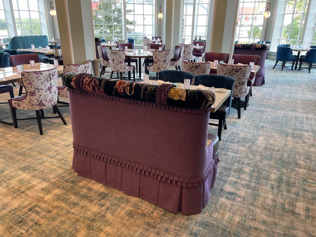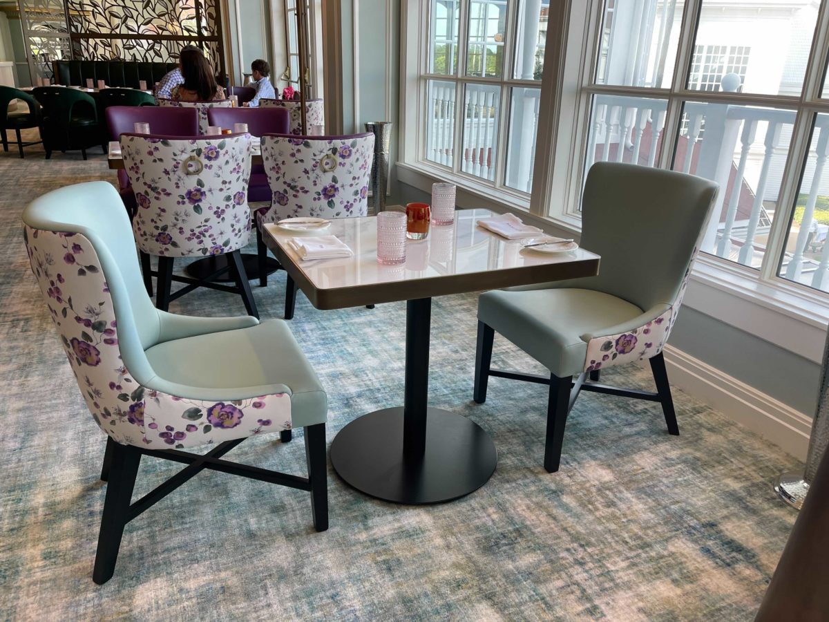The dining room is elegant and fits well with the Grand Floridian, especially with the brighter color palette.