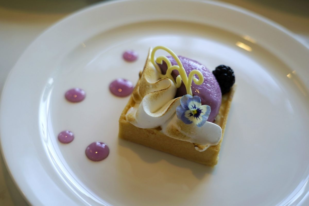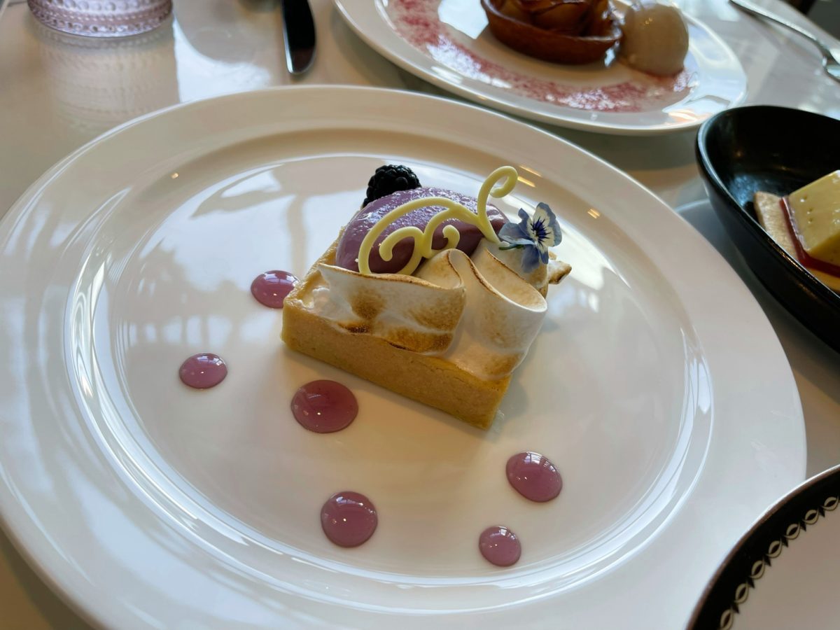 If we had to pick a favorite dessert, this would be it. On top is a blackberry mousse that looks familiar to anyone who’s been to Satuli Canteen; it’s a gelatin-based dessert from the infamous Disney Flavor Lab. Together with the other components of this dessert, it was a winning combination. The soft and tangy lemon Bavarian cream of the tartelette was obviously freshly made in-house and was decadent without being too rich or sweet. All components of the dessert culminated in a delightful flavor explosion.
