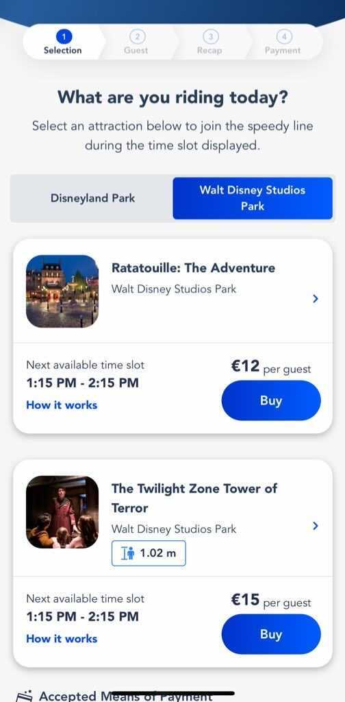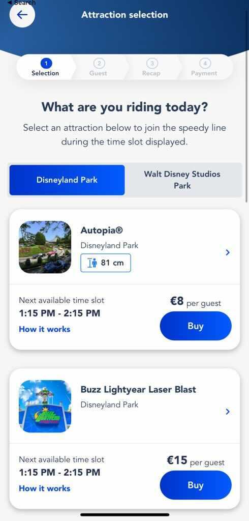 Guests can select the next available time slot for a ride and then purchase Premier Access.