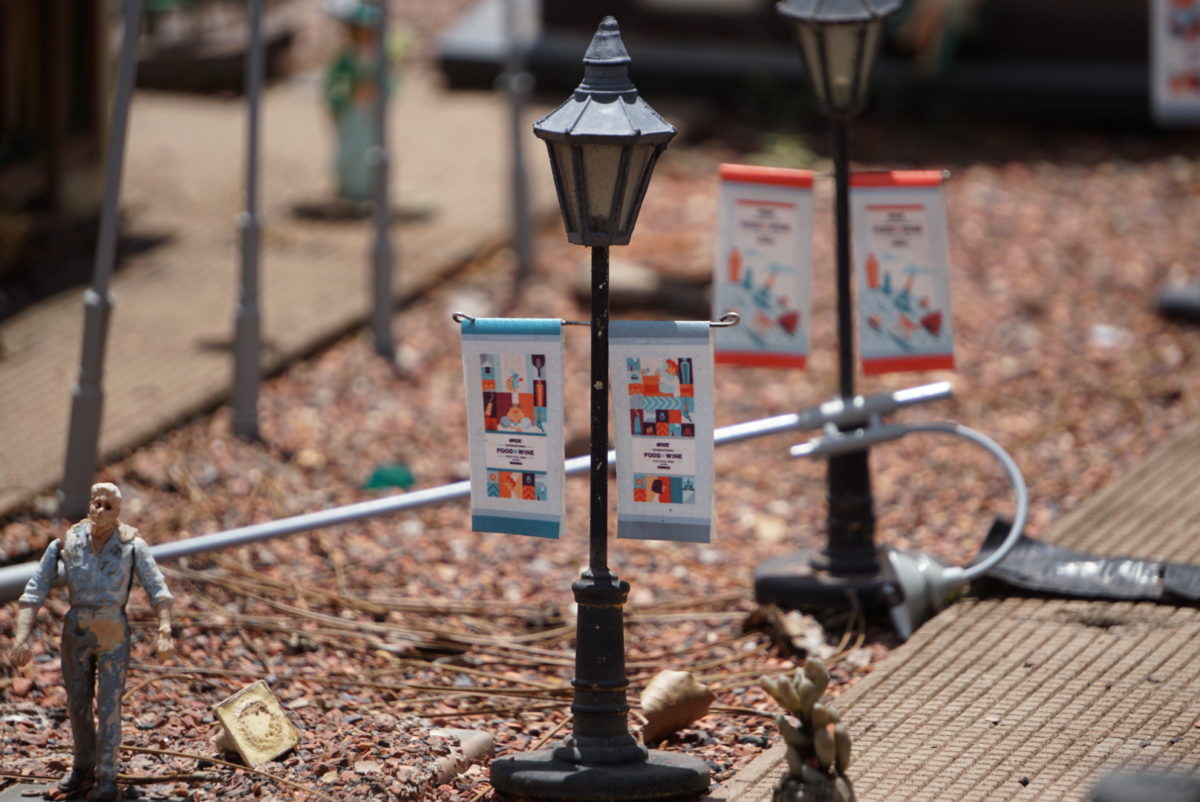 We started our journey around World Showcase with a visit to The Garden Railway in Germany! This tiny German village seems to be celebrating The EPCOT International Food & Wine Festival as well! You can now see miniature banners displaying art for the festival throughout the tiny town.