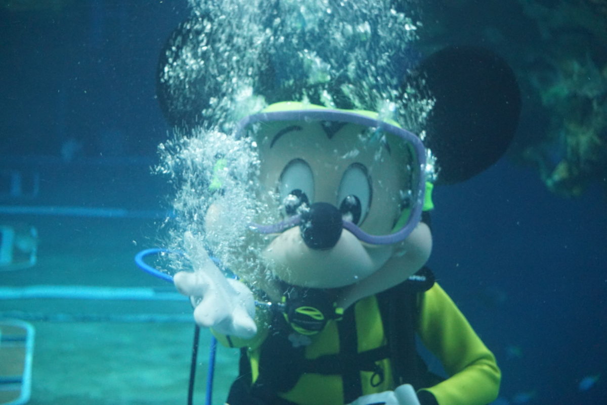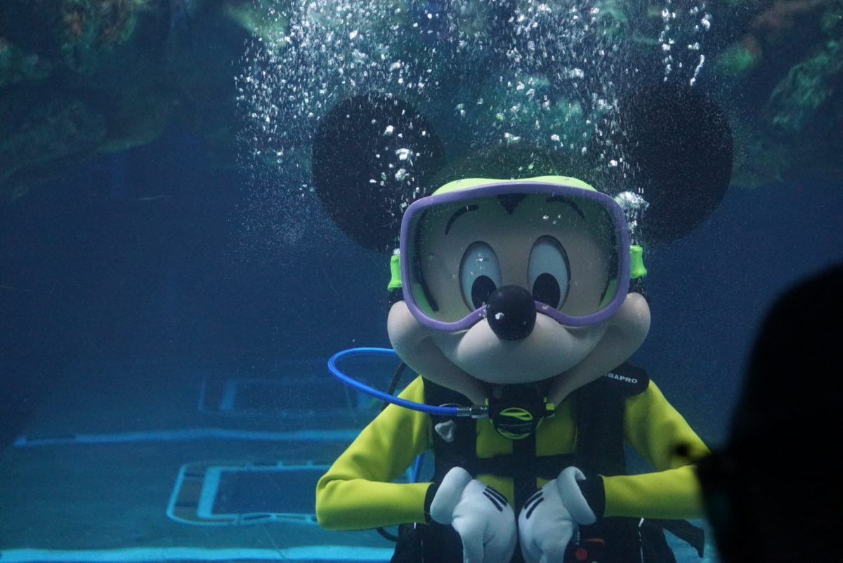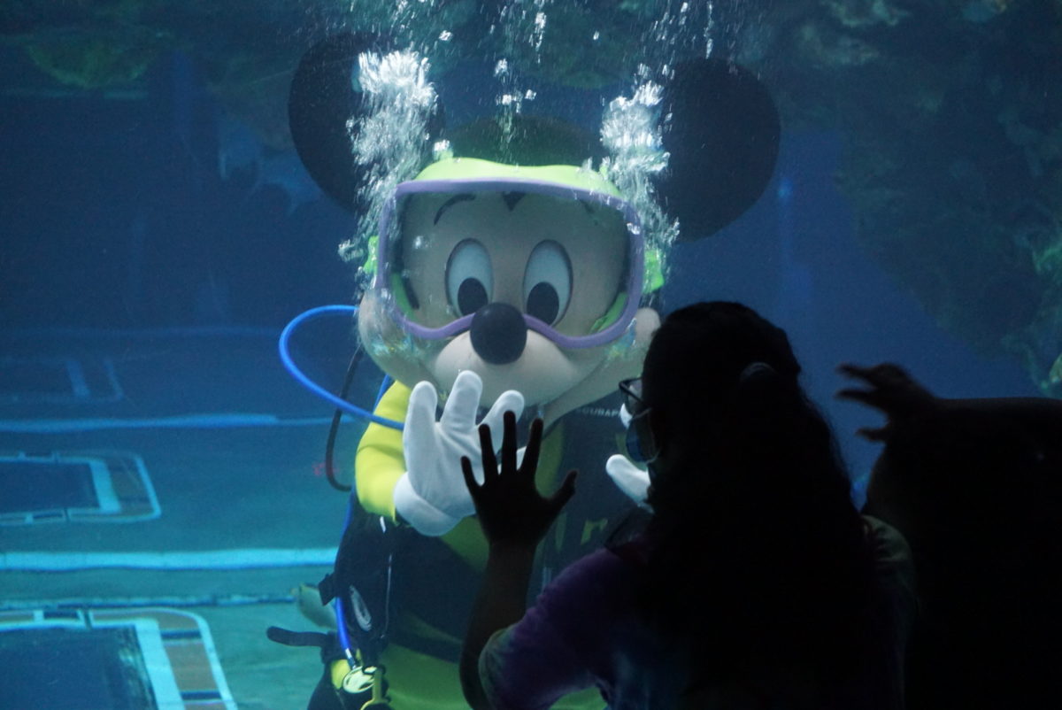 We journeyed over to The Seas with Nemo & Friends, where we were greeted by a pleasant surprise. We found Mickey Mouse scuba diving with all of his fishy friends while also taking photos and interacting with guests. We’ve seen Mickey taking a dip here once before on World Oceans Day, and we were very happy to see him return. We hope to see Scuba Mickey again in the future.