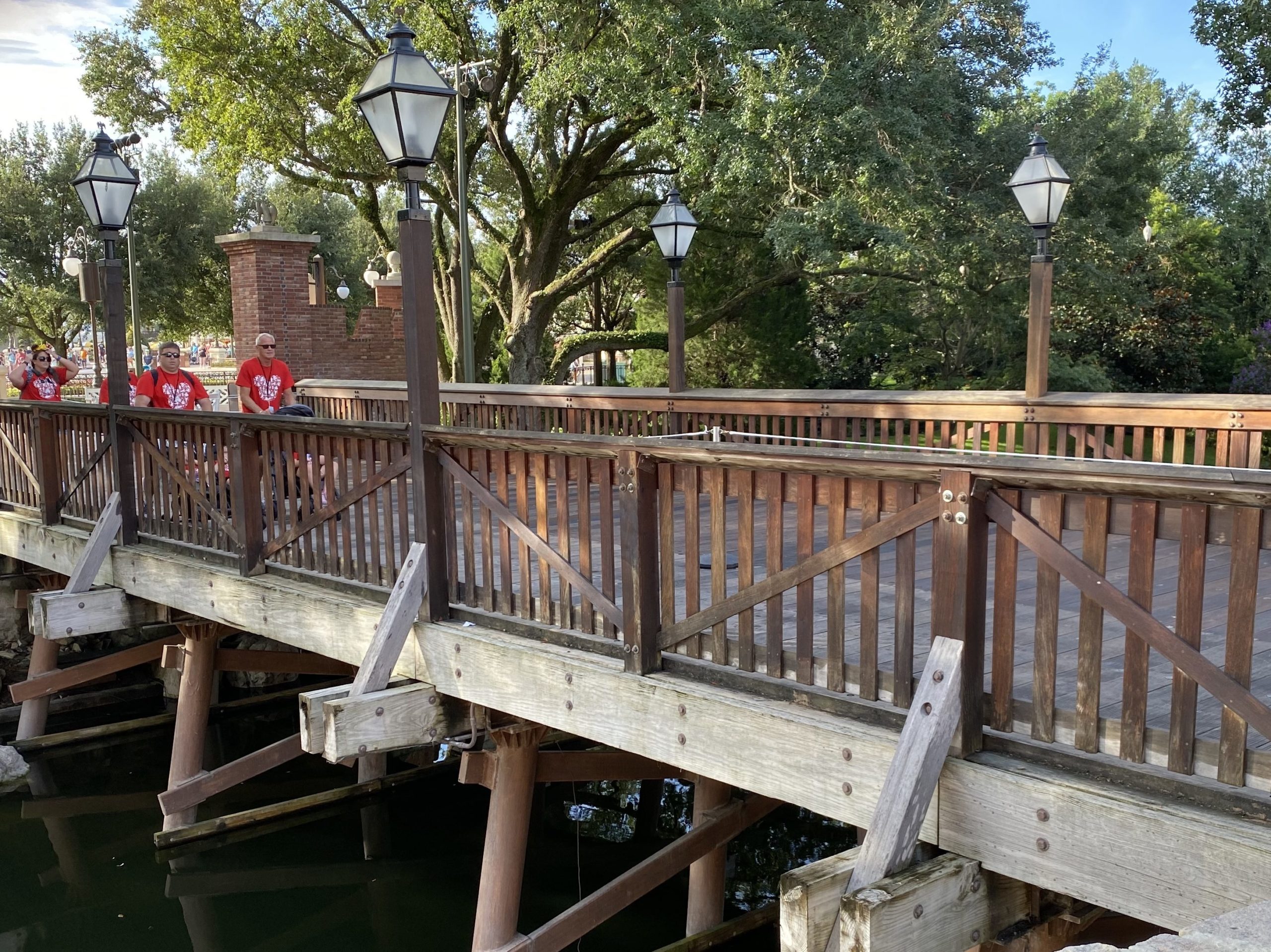 The bridge connecting Liberty Square to the hub is receiving a new coat of stain to freshen it up.