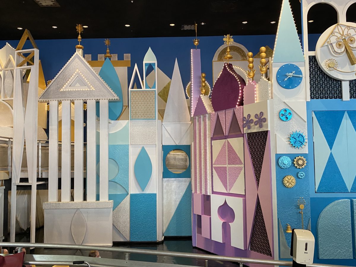 “it’s a small world” continues to receive a colorful overlay of shades of varying paint colors — today shades of blue — following its recent refurbishment.
