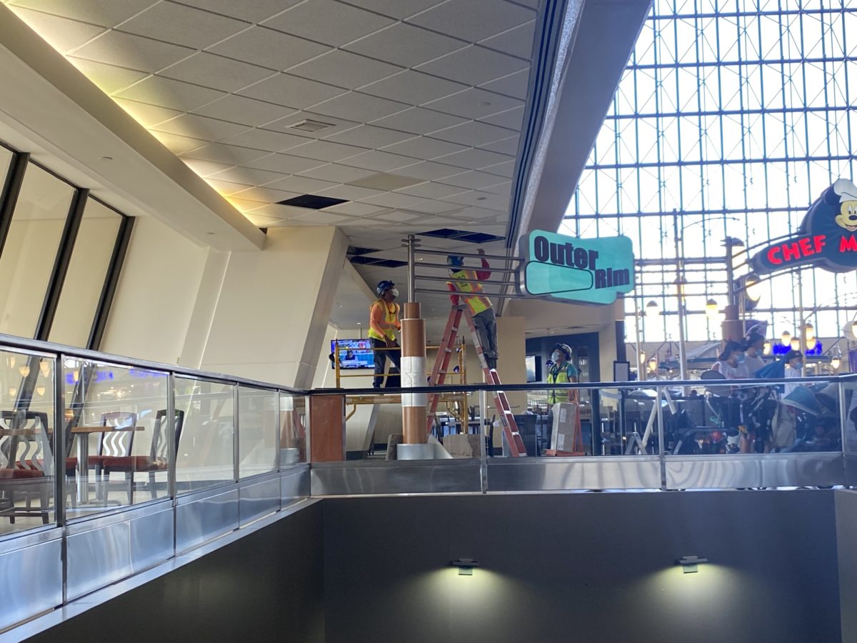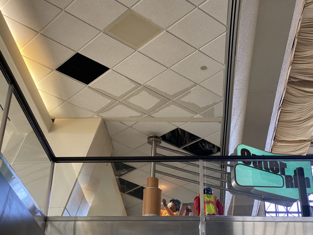 Over at Disney’s Contemporary Resort, many signs led to quite a few leaks, including this one over the stairs and escalators near Outer Rim and Chef Mickey’s. Check here for our most recent update on the resort’s ongoing refurbishment.