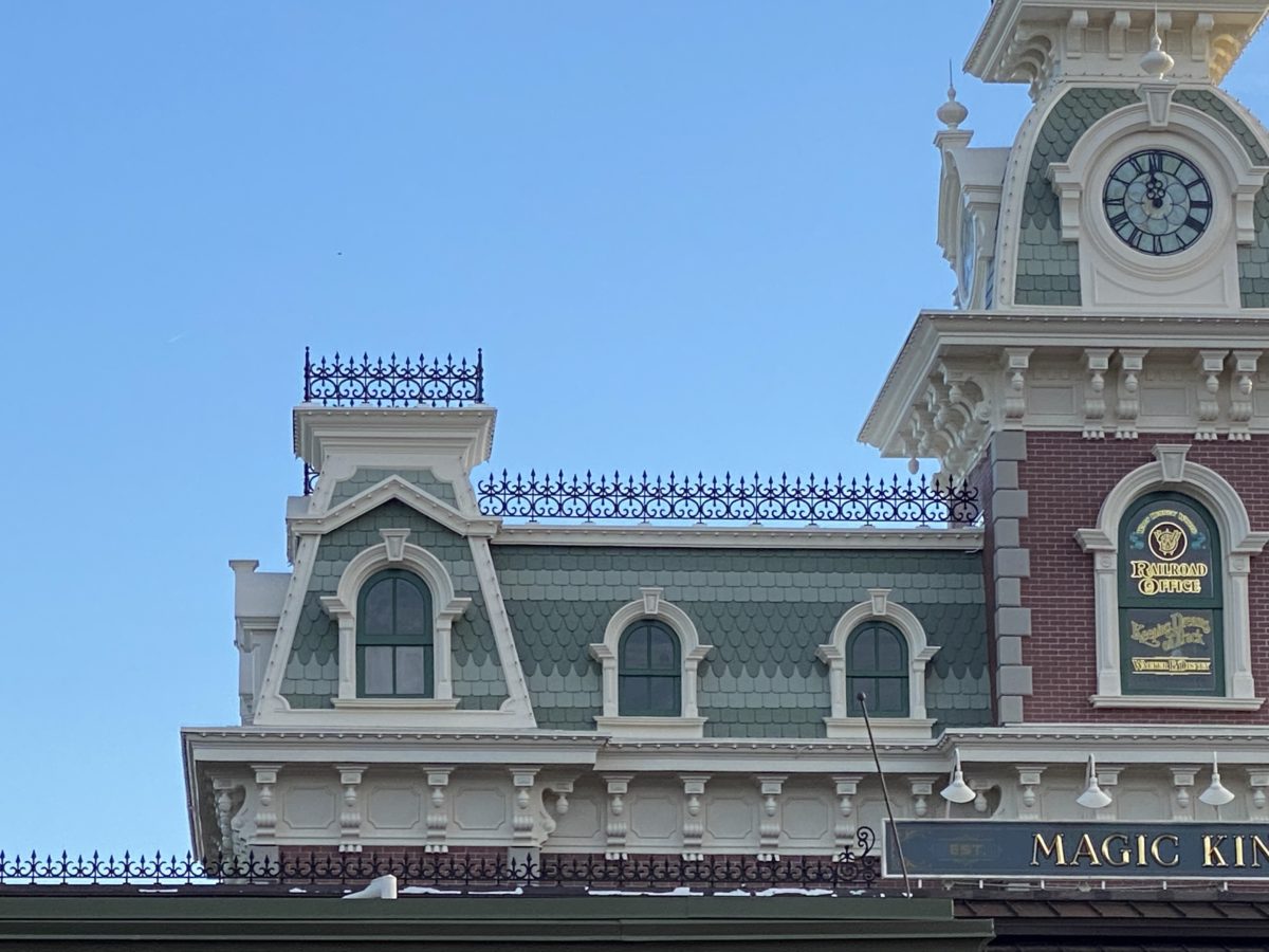 More scrim has been removed from the left entrance-facing side of the Main Street Train Station as we begin to see it returned to its former glory.