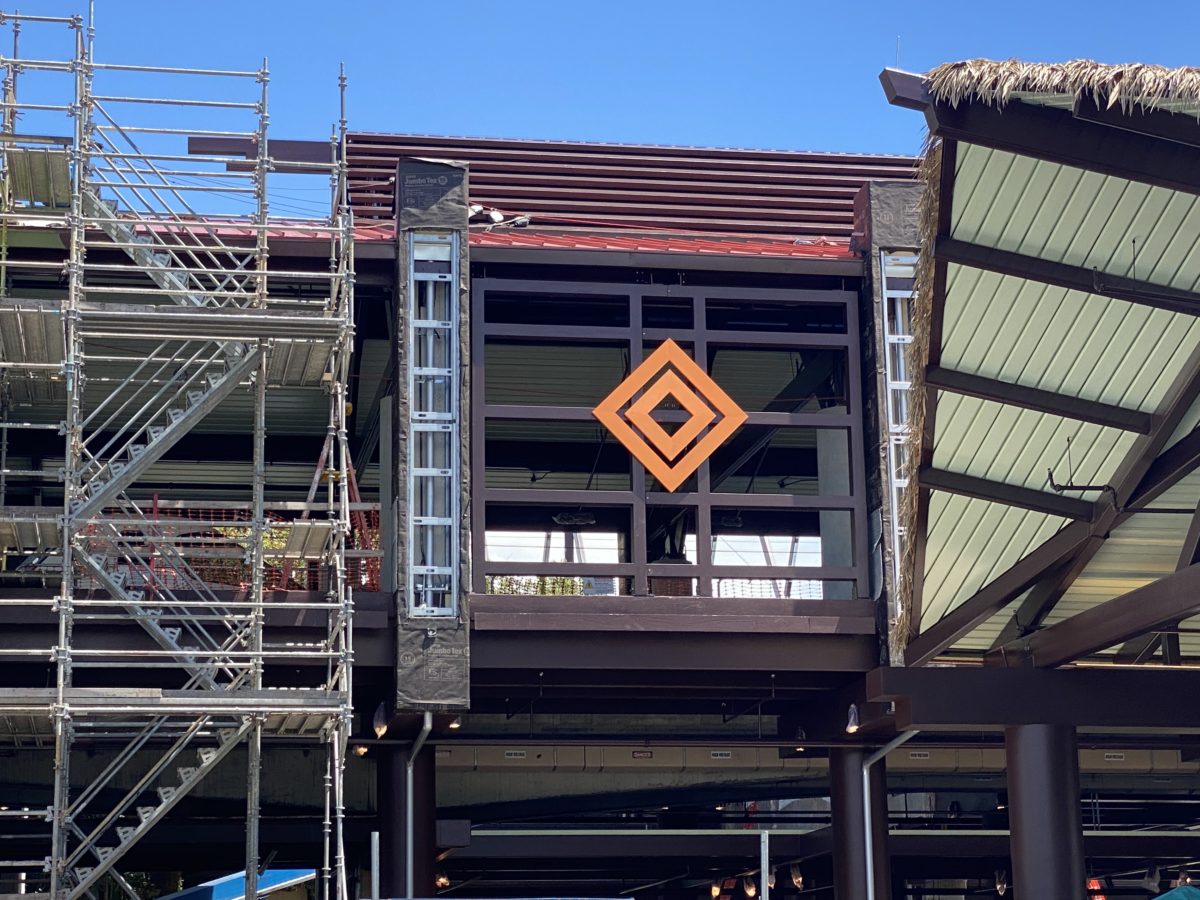 At Disney’s Polynesian Village Resort, more decorative panels were added to the exterior monorail station as the renovation moves forward.