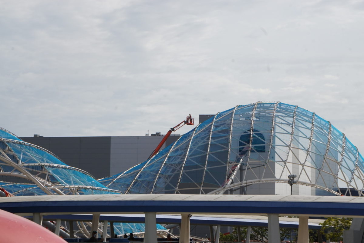 While in Tomorrowland, we went to take a look at the TRON Lightcycle / Run construction site. We continue to see progress on the brand new structure that was recently found inside the construction area.
