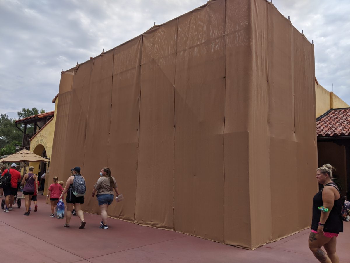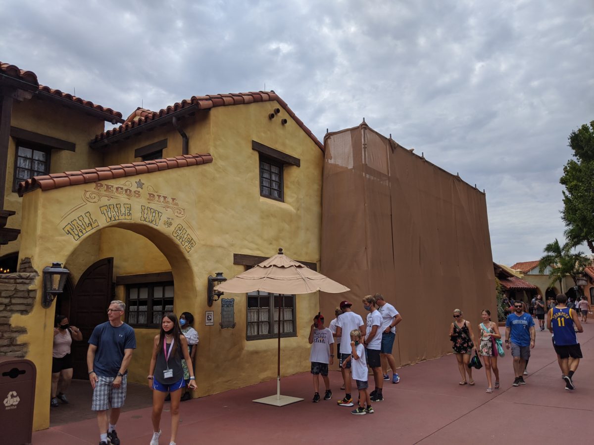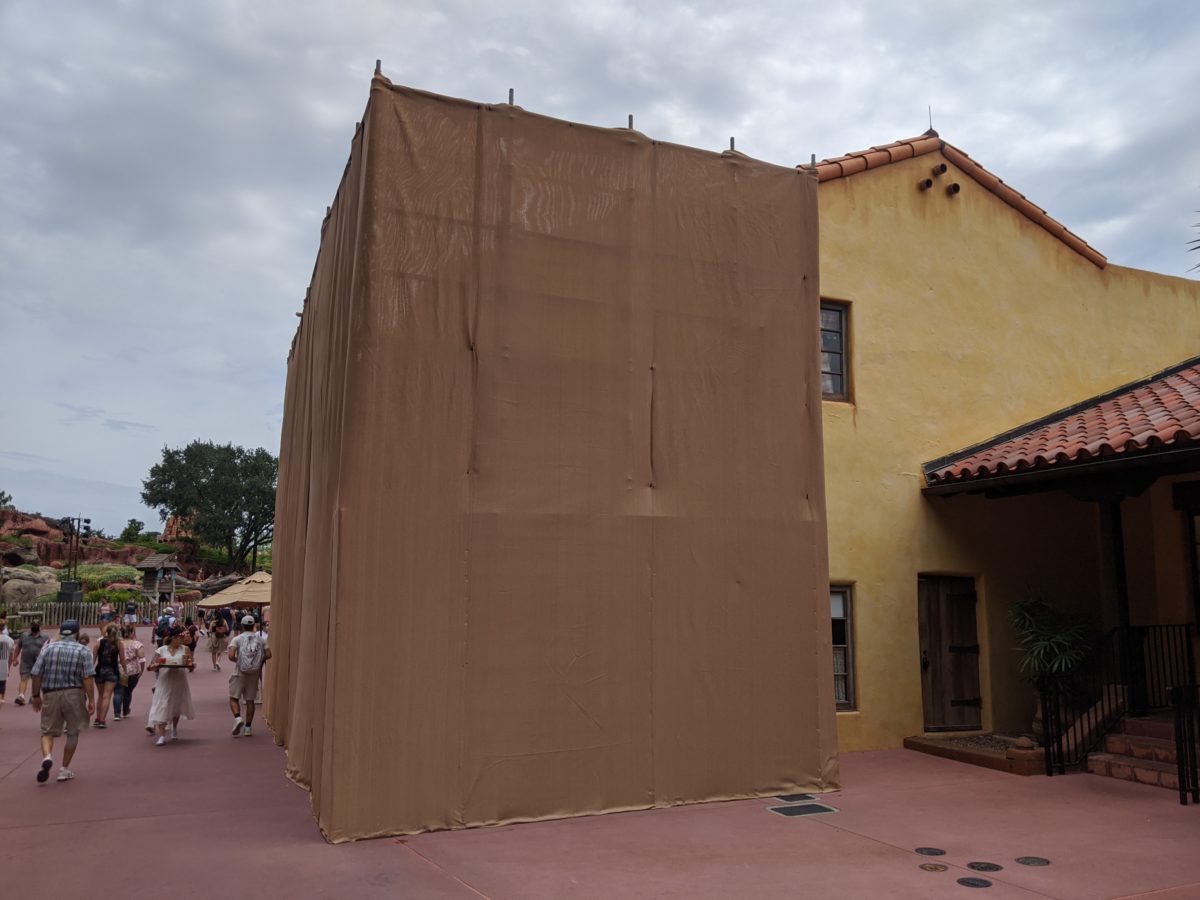 We also saw scrim pop up across the way at Pecos Bill Tall Tale Inn and Cafe. Multiple exteriors around the area have seen refurbishment recently in preparation for Walt Disney World’s 50th Anniversary.