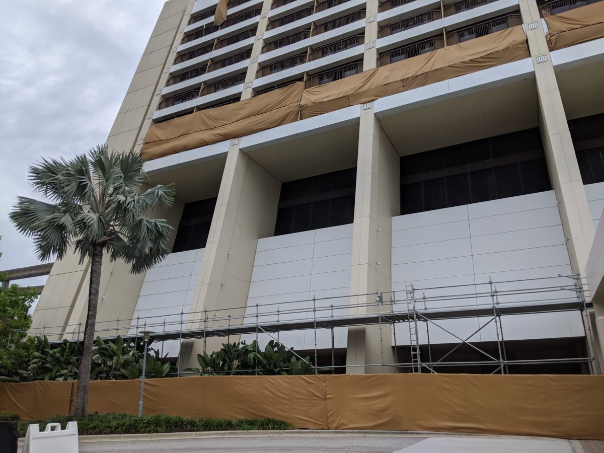 Over at Disney’s Contemporary Resort we saw the addition of lots of new scrim on the lower exterior level. To see all of the areas under refurbishment at the resort, check out our update here.