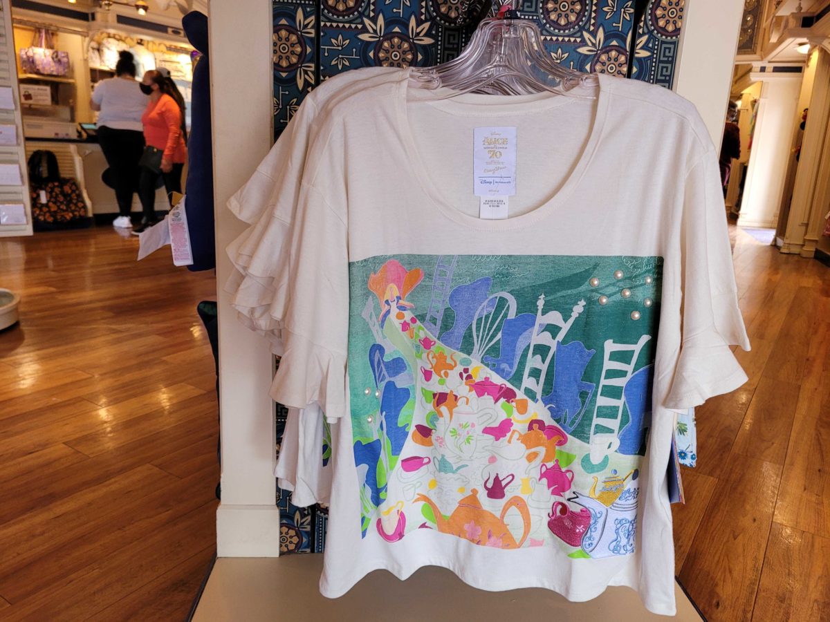 A new “Alice in Wonderland” collection inspired by the artwork of Mary Blair is now available at Disneyland to celebrate the film’s 70th anniversary. The collection can be found in Disney Clothiers and China Closet.