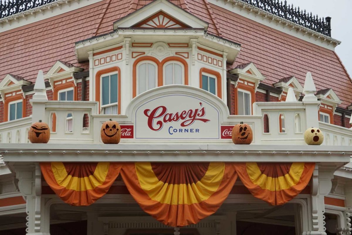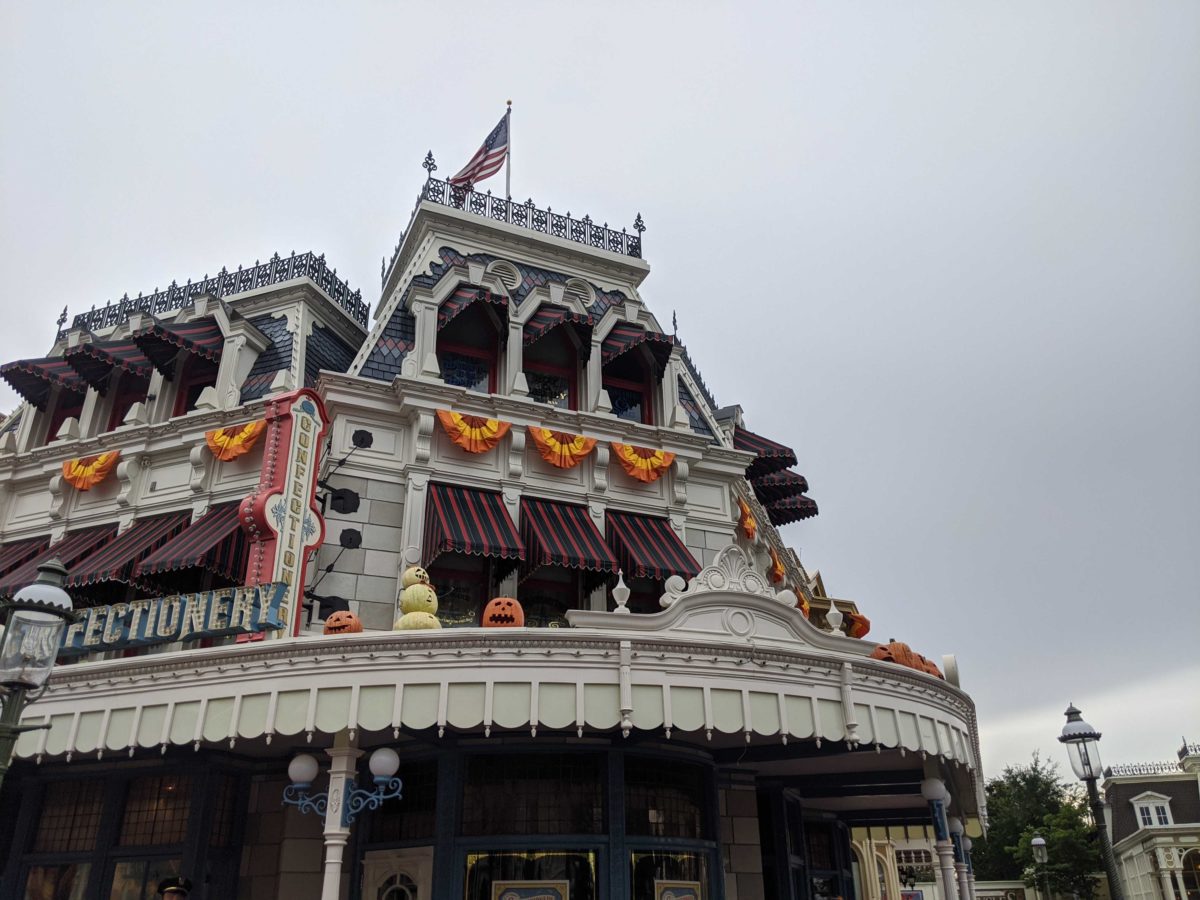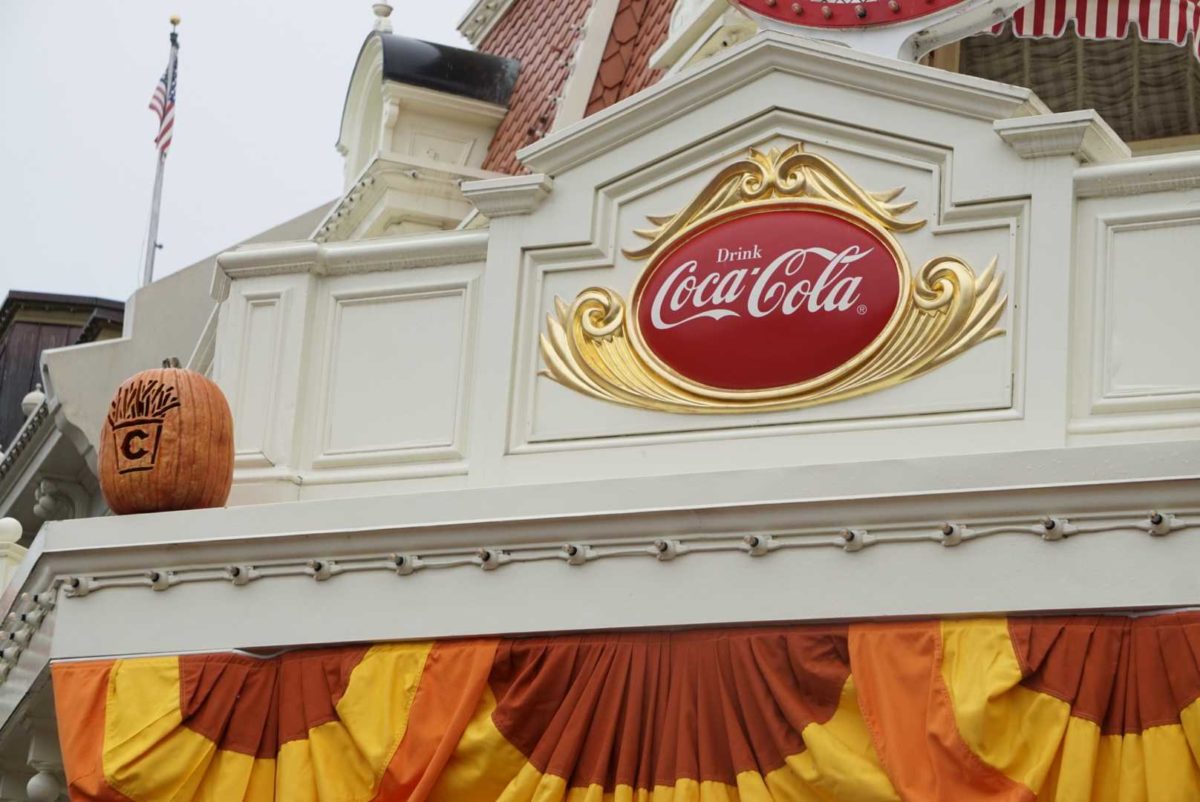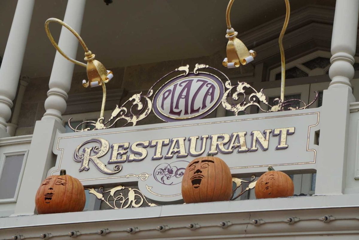 Each Main Street, U.S.A. shop and restaurant has its own themed pumpkins. The Plaza Ice Cream Parlor has pumpkins carved with ice cream cones.