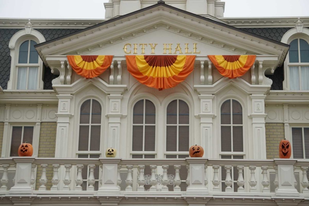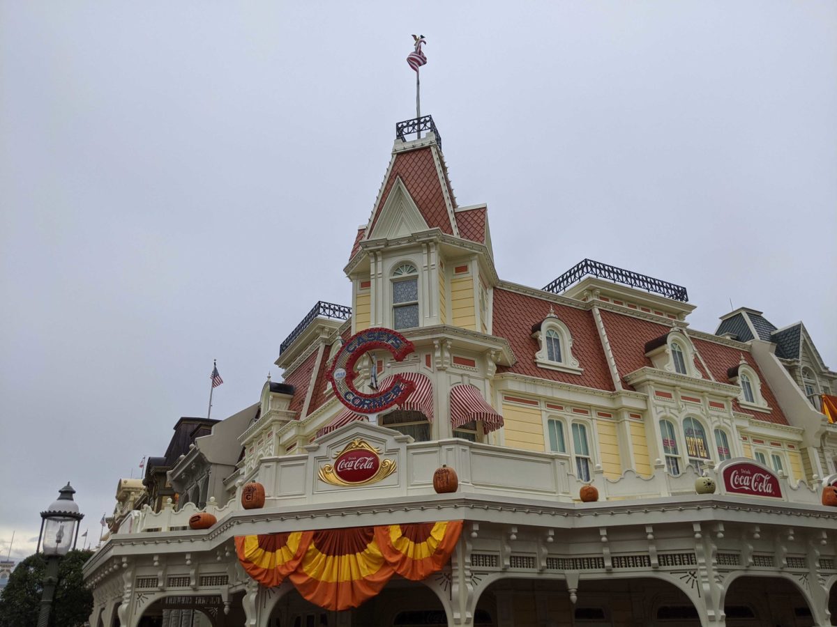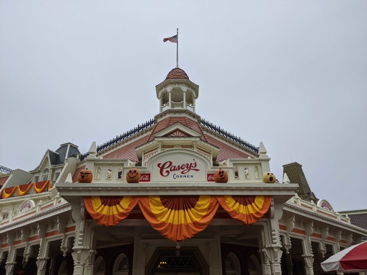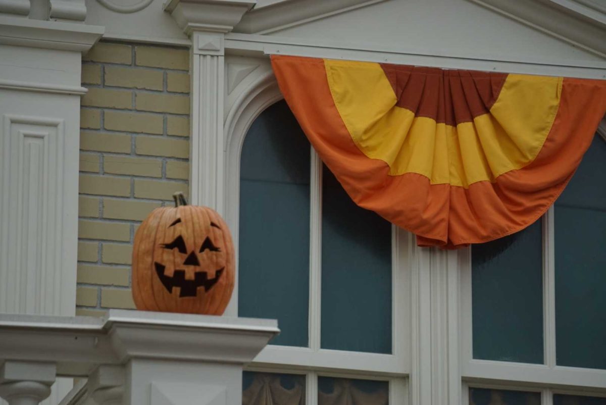 Fall has officially arrived on Main Street, U.S.A. at Magic Kingdom with autumnal bunting and now pumpkins! Themed jack-o-lanterns now grin down at guests entering the park, reminding us that Halloween is only three months away.