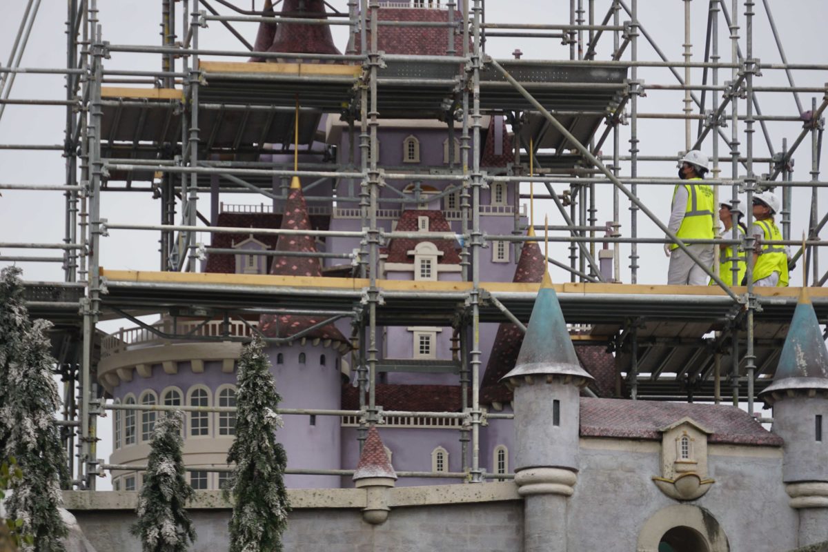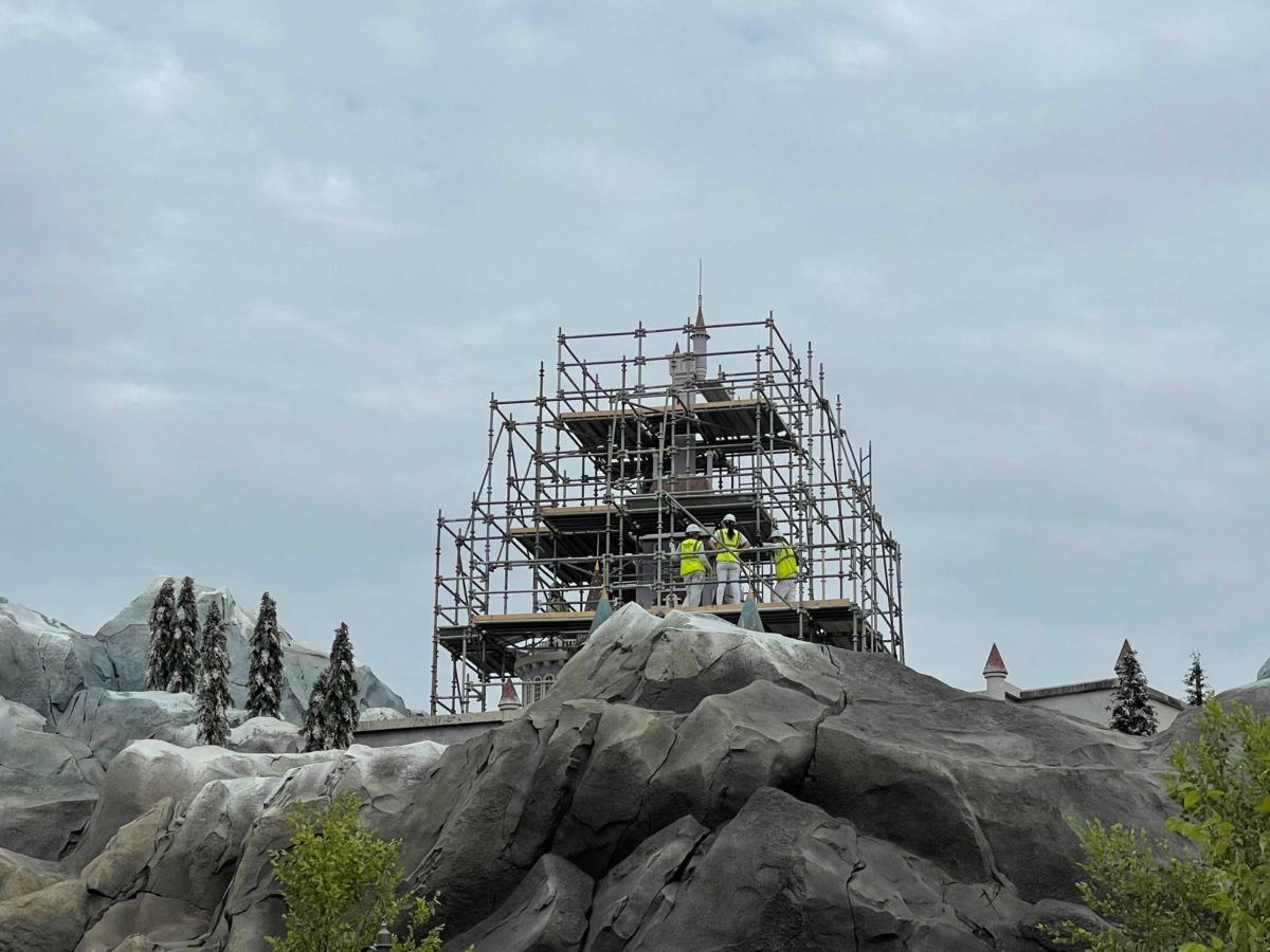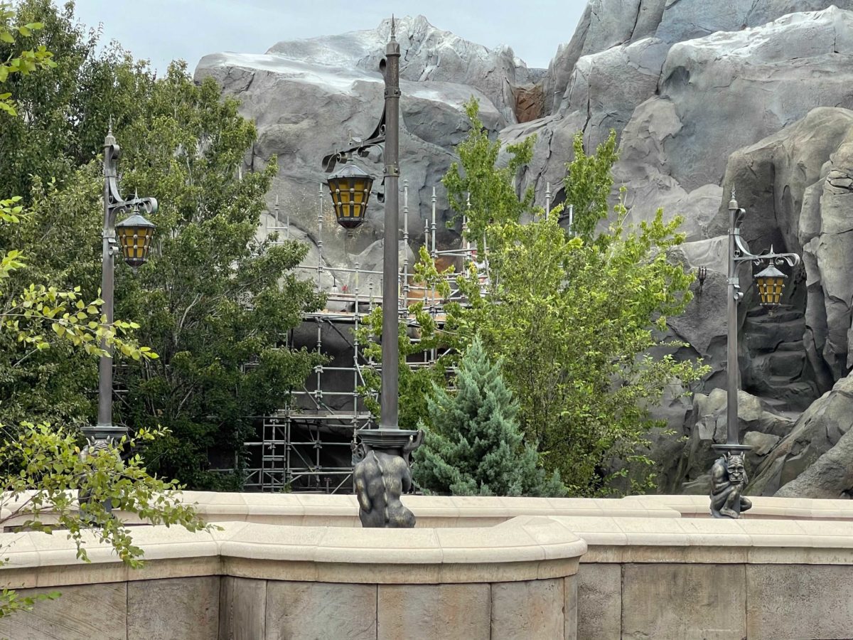 The façade of Be Our Guest at Magic Kingdom is being refurbished ahead of the park’s 50th anniversary. This includes repainting some of the mountainous exterior and Beast’s Castle.
