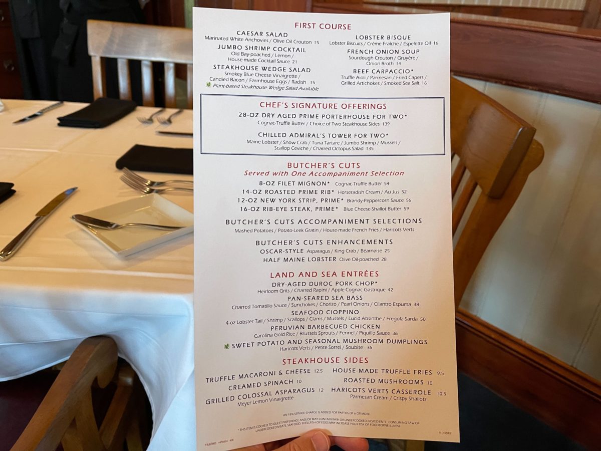 As we reported earlier, Yachtsman Steakhouse has reopened at Disney’s Yacht Club Resort. Guests can savor premium steaks, fresh seafood, and more at this New England-style steakhouse. We stopped by for dinner; let’s see how it fared.