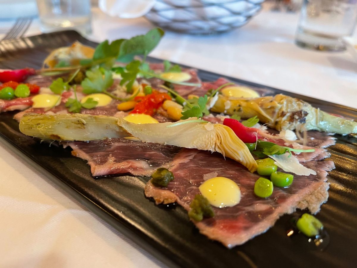 While the portion of beef carpaccio is not huge, it is so rich with an excellent marble on the beef. The fried capers pop with flavor and add the right amount of saltiness to the beef. The shaved Parmesan adds a nutty undertone, and the truffle aioli brings a creamy and earthy texture that brings everything together.
