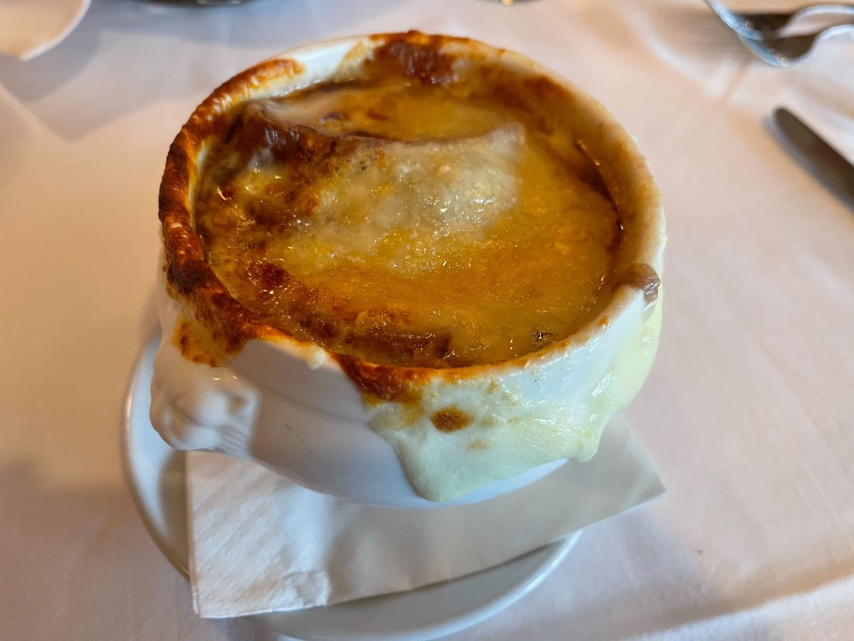 This soup is made with five different kinds of onion. The soup had the perfect saltiness, with a robust sourdough that soaked up the soup and gave great texture without falling apart or being too meager. The cheese added a creamy, toasted flavor that complimented the soup well. While the sourdough is different than a classic crouton you get in a more traditional French onion soup, we enjoyed this very much. It is the perfect comfort food, leaving us feeling warm and satisfied.