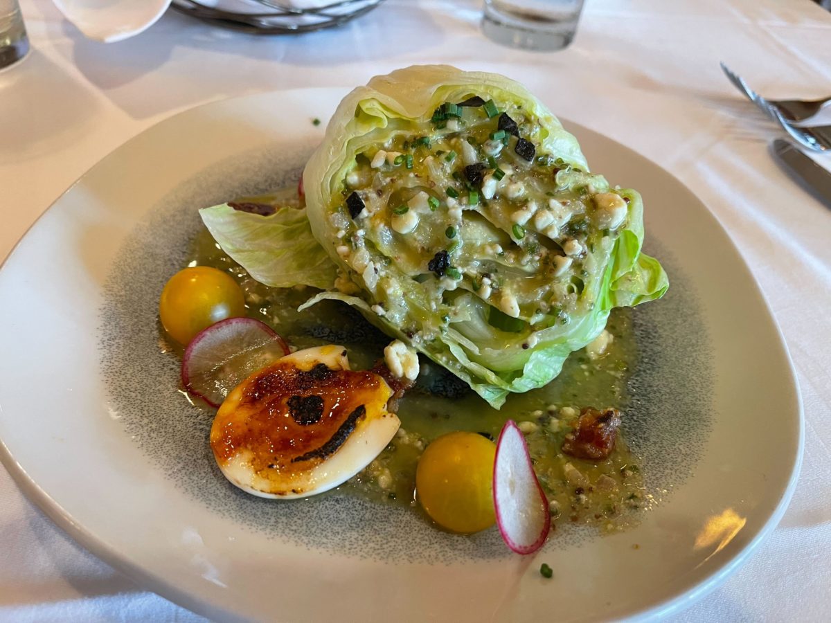 Yachtsman has a really great take on the traditional steakhouse wedge salad. Rather than the traditional dressing, it came with a blue cheese vinaigrette, so you get the distinct flavor of the cheese crumbles but also the fresh pop of the vinegar. The heirloom cherry tomatoes were fresh and full of flavor, but the real capstone of this dish is the candied bacon crumbles that add a smoky, salty sweetness that pulls everything together.