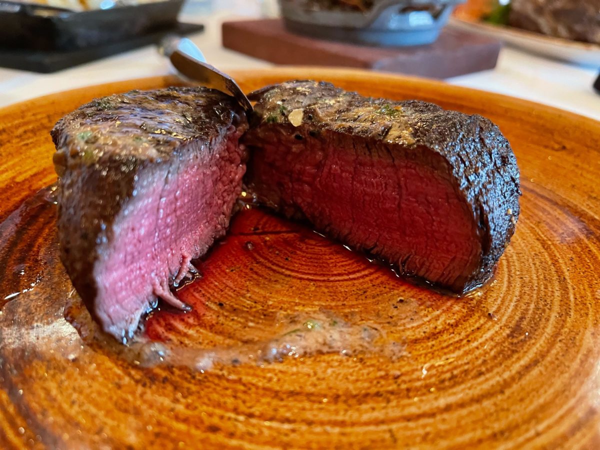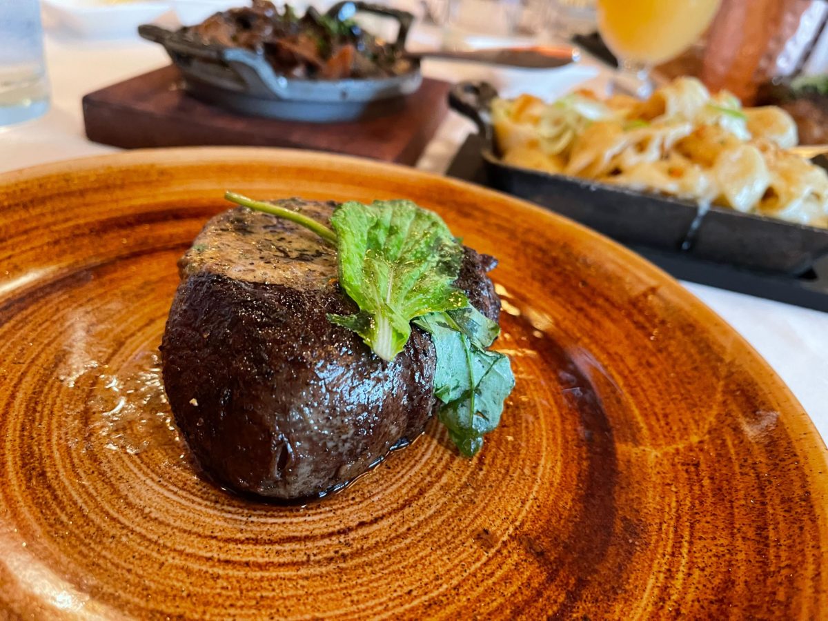 The filet mignon was incredibly tender, juicy, and lean. It had no frills such as extra sauces or anything, but it also didn’t need any. We ordered it with the potato-leek gratin, which was our favorite of all the sides we tried. It was dense but tender, cheesy, and tangy with a mild onion flavor. If you have only one choice of side, this is the one to pick.