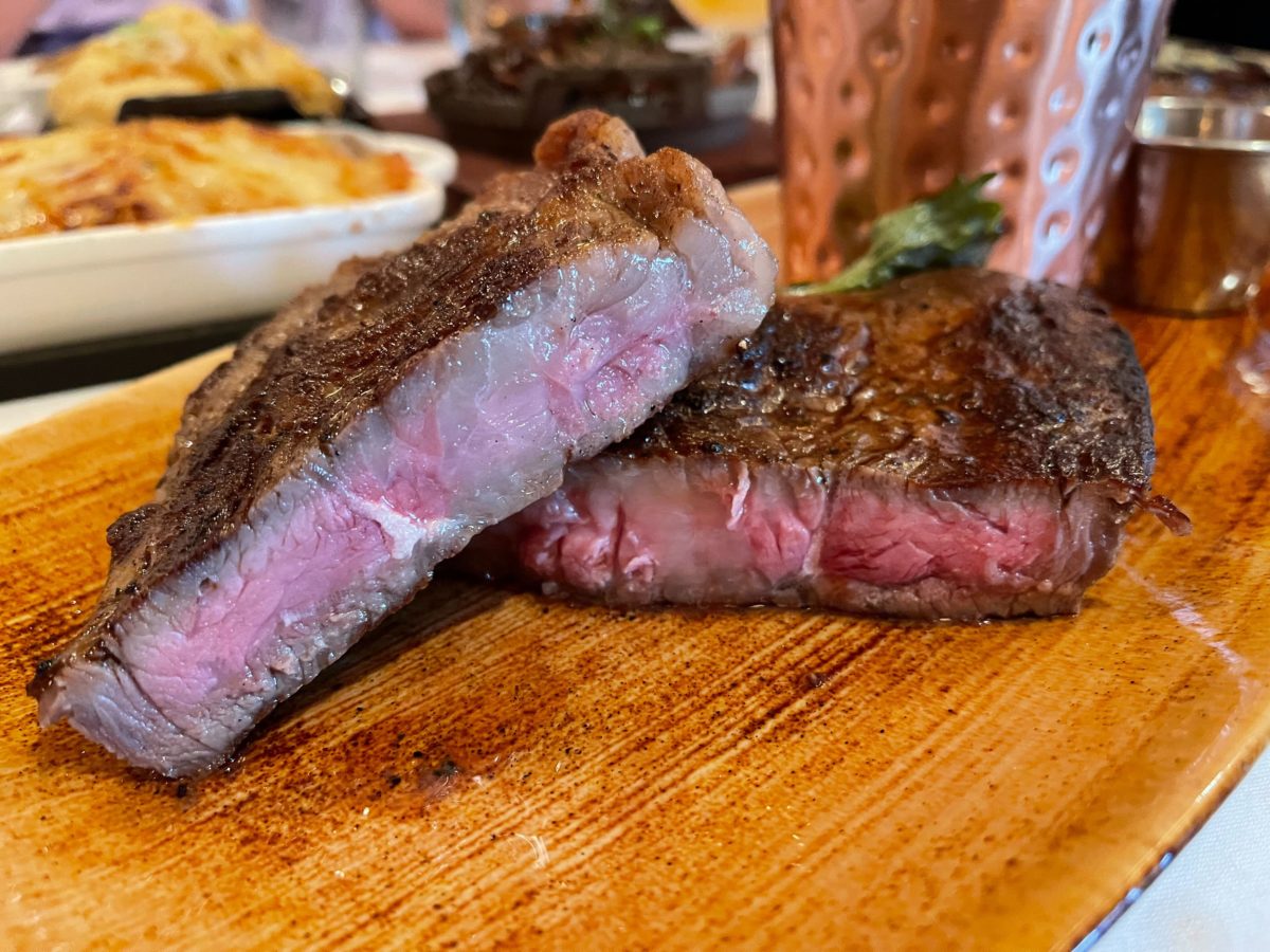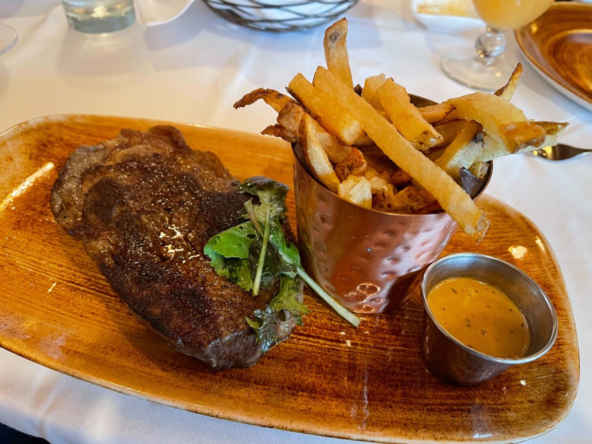 We were served a very flavorful cut. It was the toughest of the steaks we tried but also the most flavorful. The peppercorn-brandy sauce was a real standout as well, adding a tang without overpowering the meat. We ordered this with the house-made fries, which were fresh cut, perfectly crispy on the outside, and tender on the inside, with a nice dusting of sea salt.