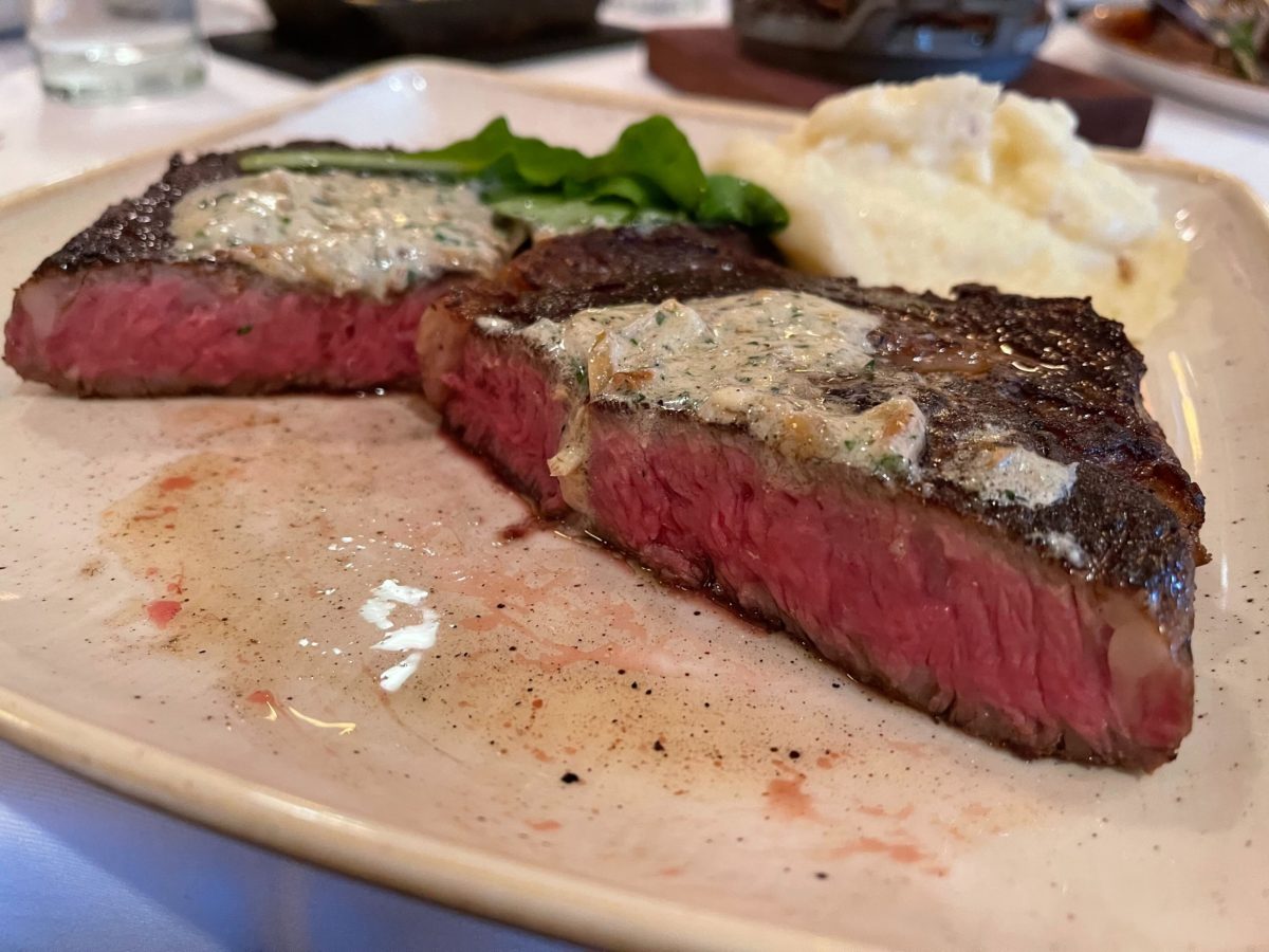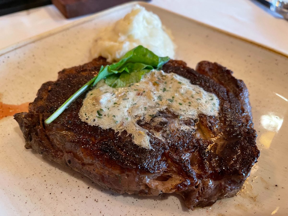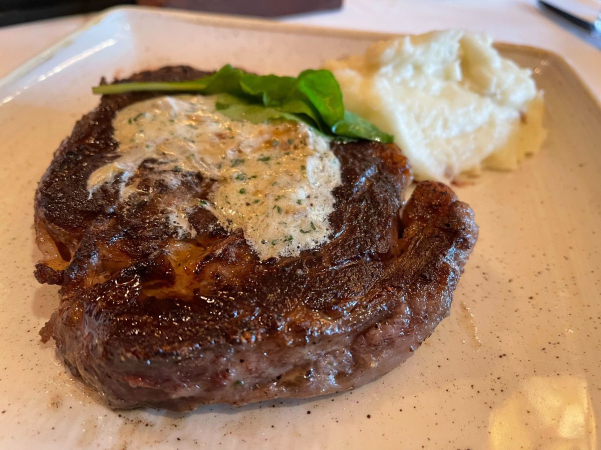 Served with a bleu cheese, cognac, and truffle sauce, the ribeye was robust, meaty, and well-marbled. The sauce was an excellent complement. We ordered it with mashed potatoes, and they were good, but nothing special.