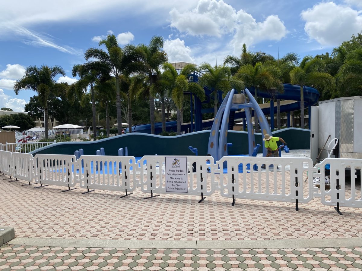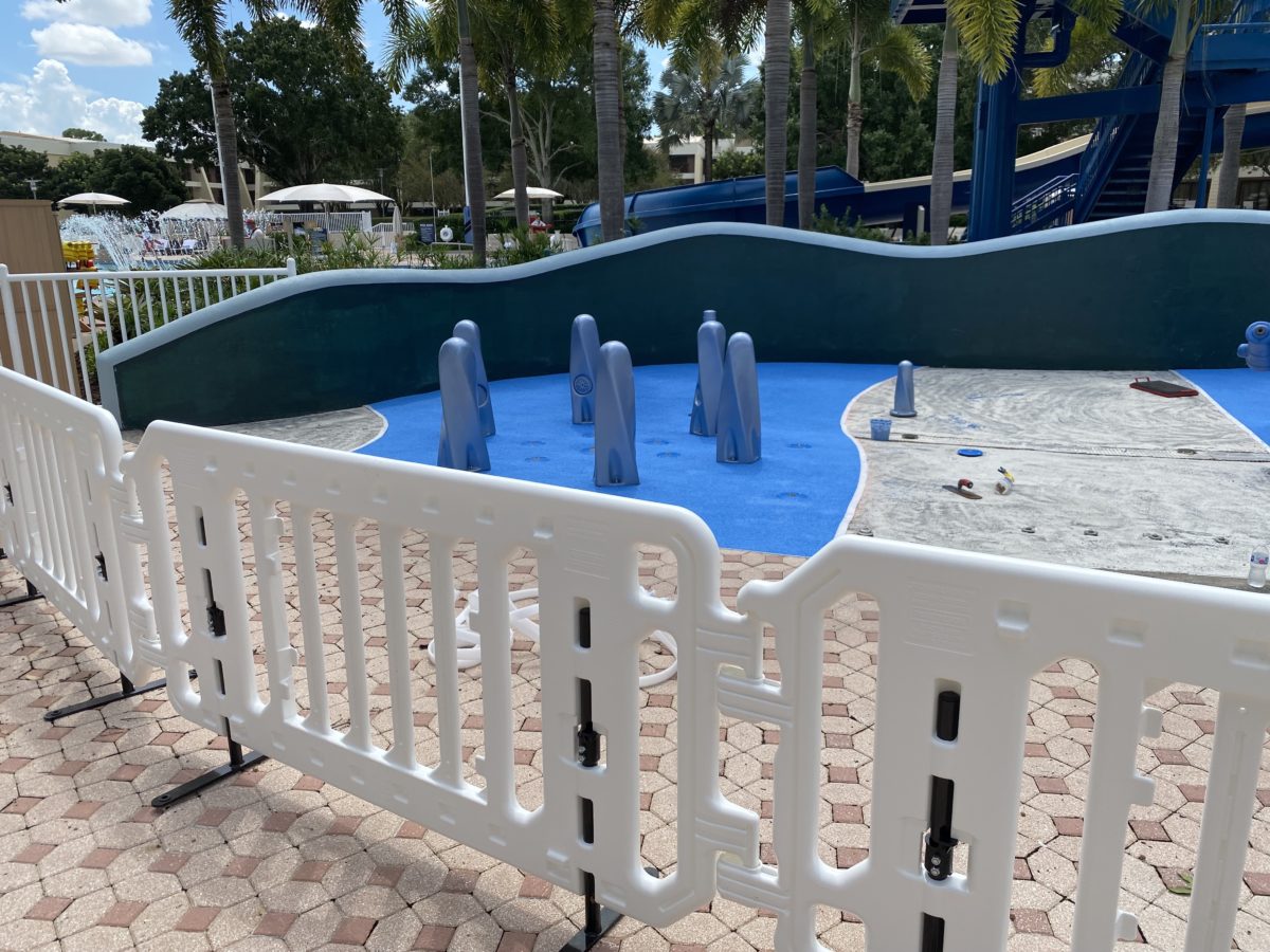 The Splash Zone near the pool area is being refurbished with fresh paint and a new flooring.