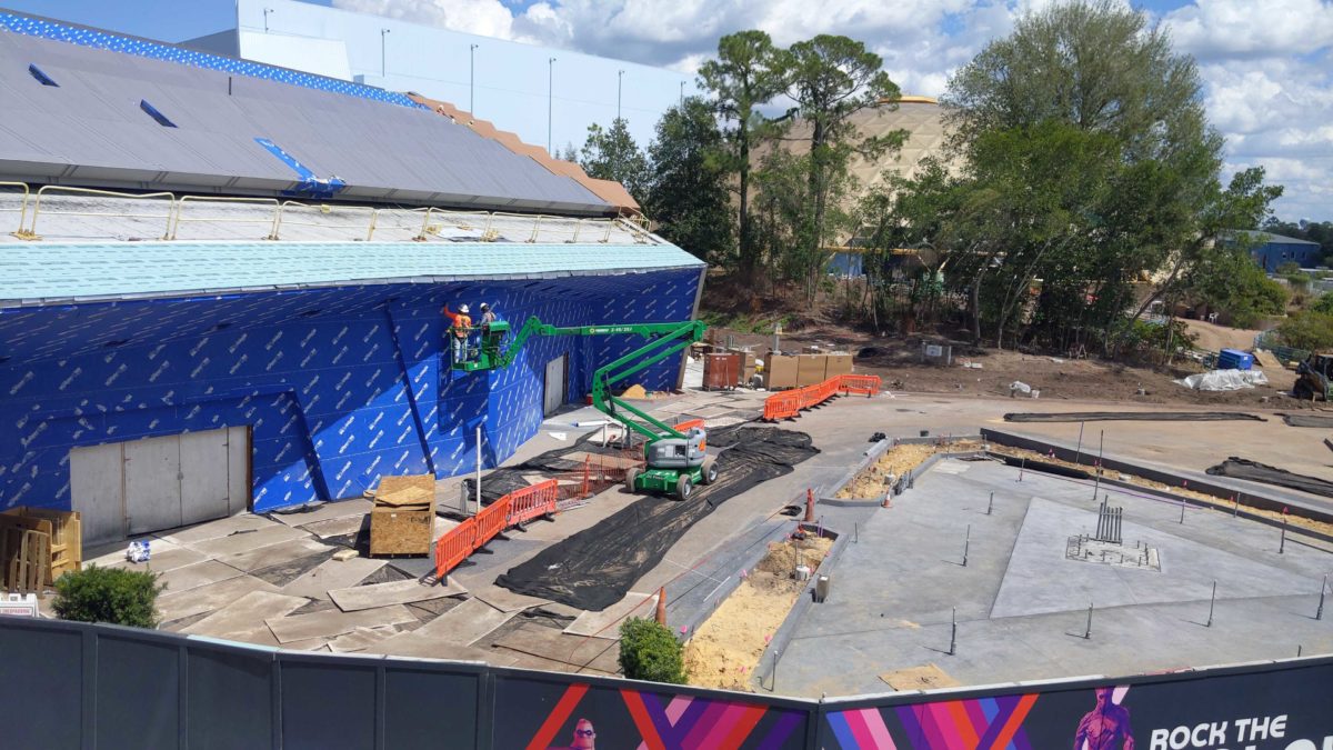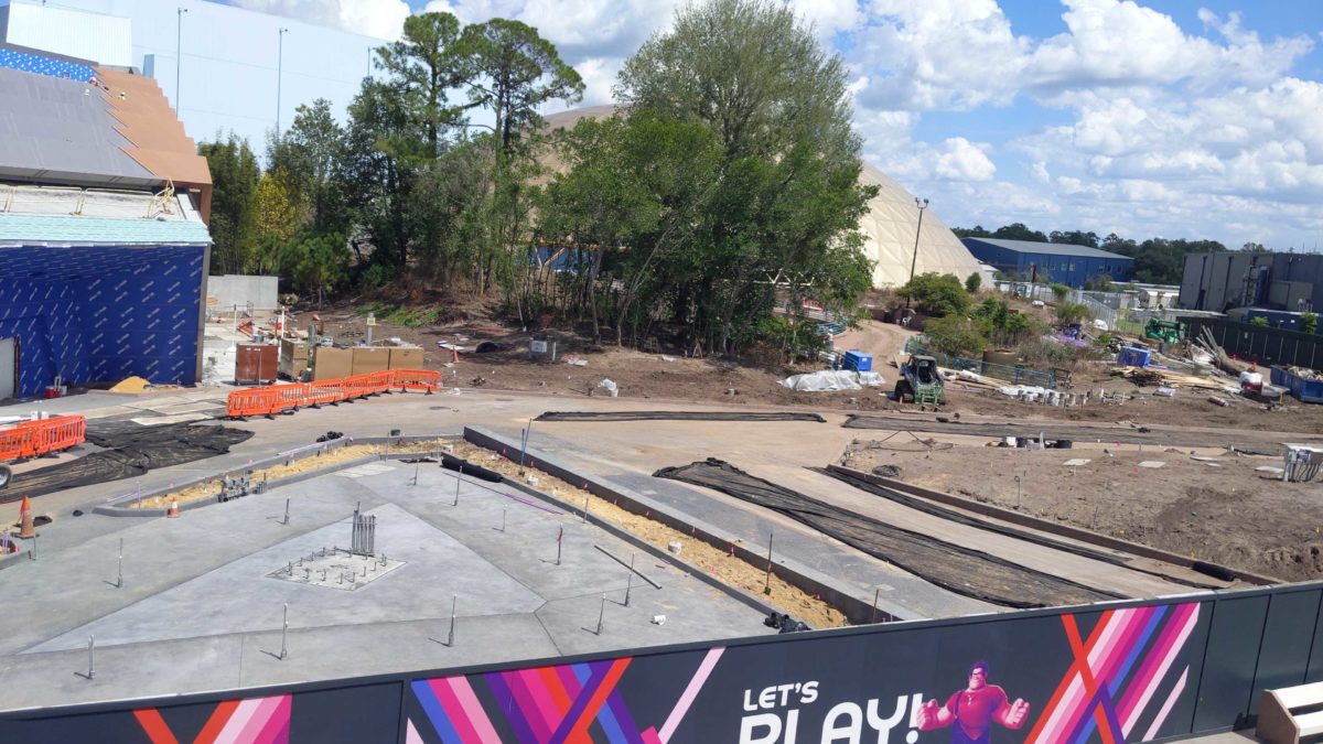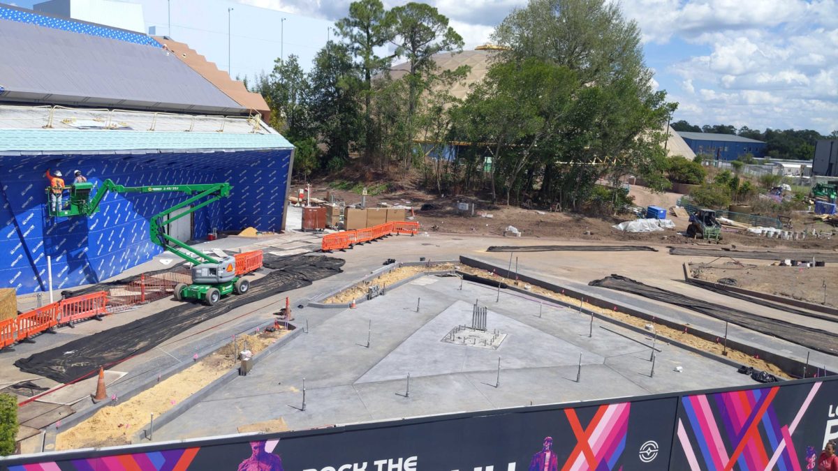 Work continues at Guardians of the Galaxy: Cosmic Rewind since our last update, where most of the pavement in front of the attraction was almost complete.
