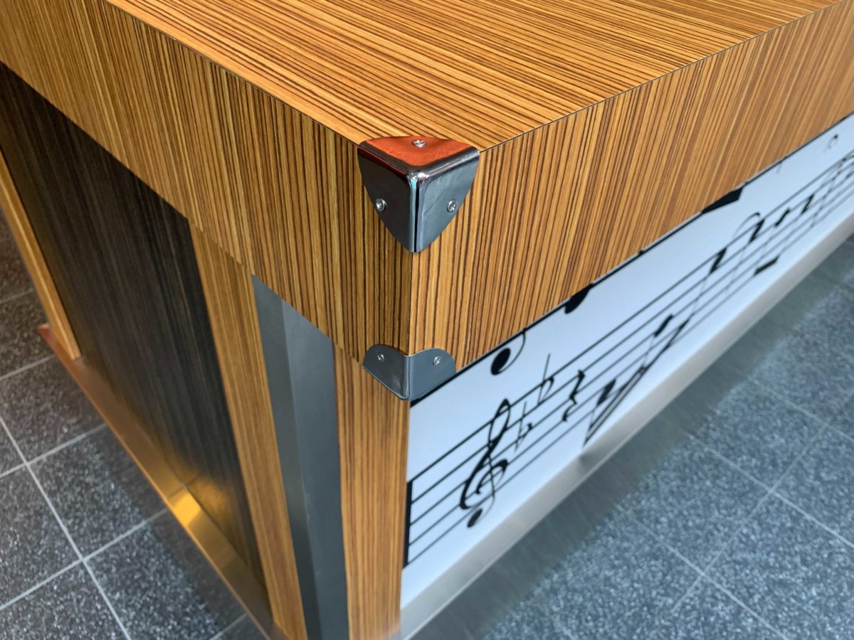 They’ve been designed to have a wood grain appearance, with the metal corners giving it just a slight resemblance to the trunks many touring musicians use.