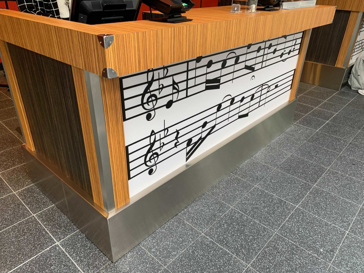 As before, the base of the desks has a sheet music motif. Can you name the tune being displayed?
